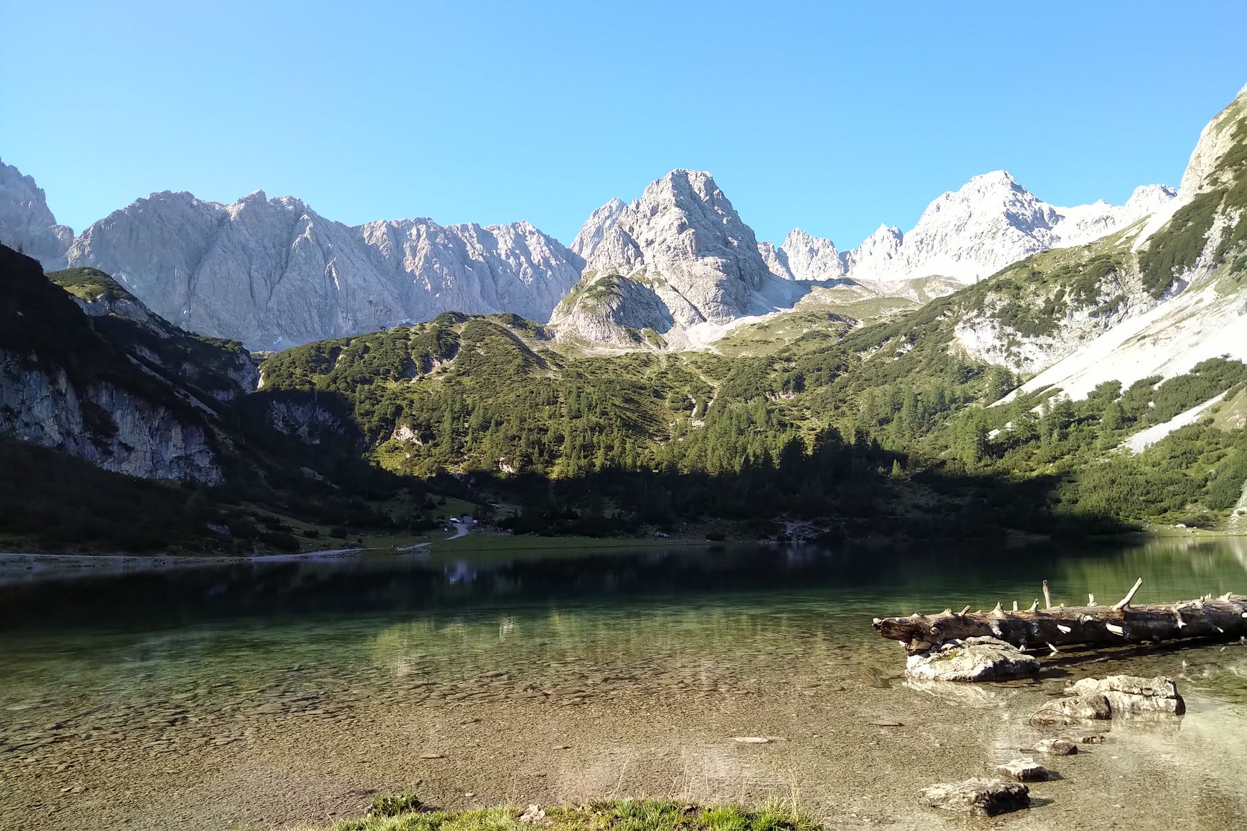 Eine der flacheren Stellen, bei denen man die Aussicht auf den Seebensee auskosten kann: