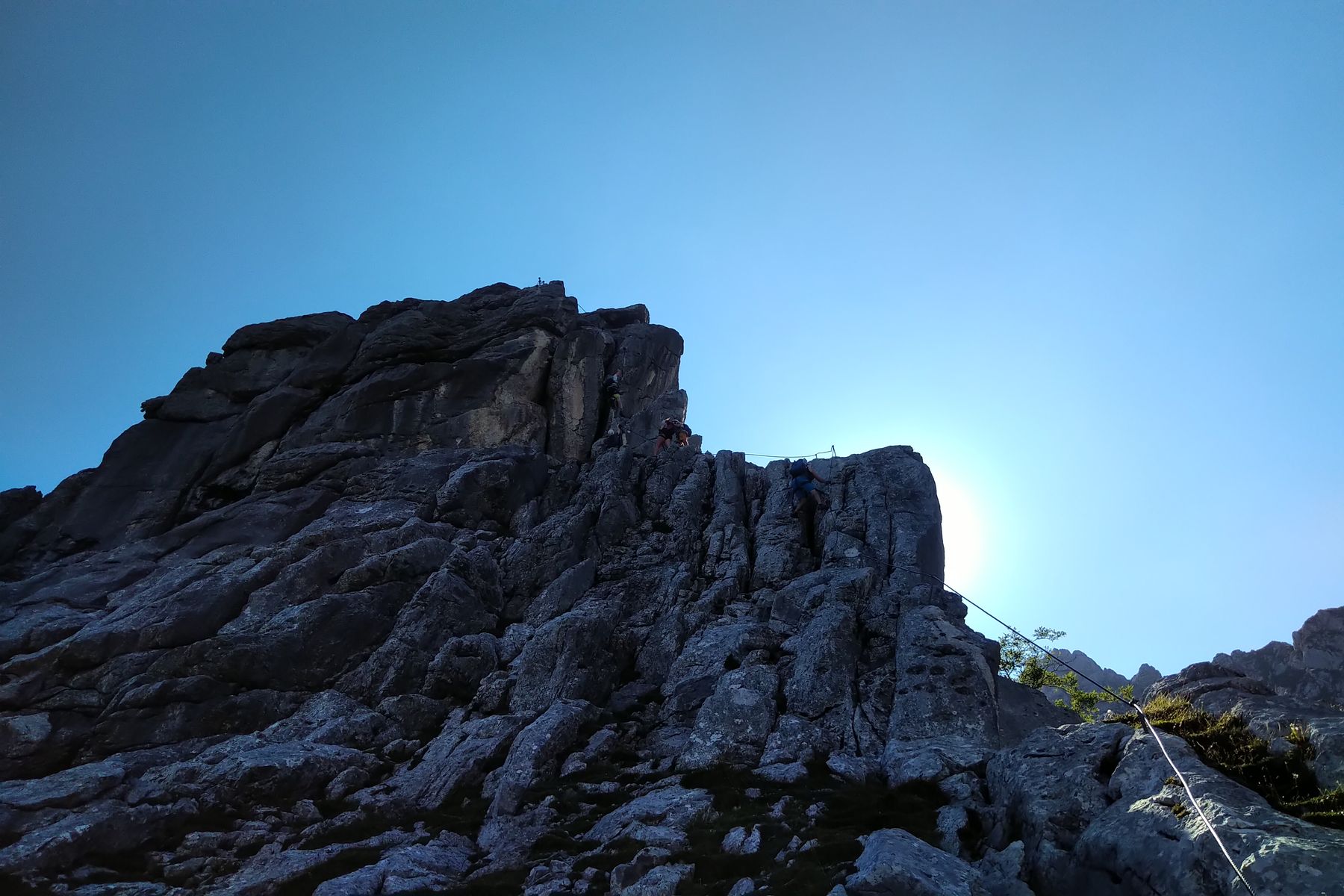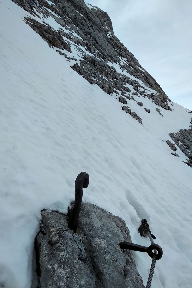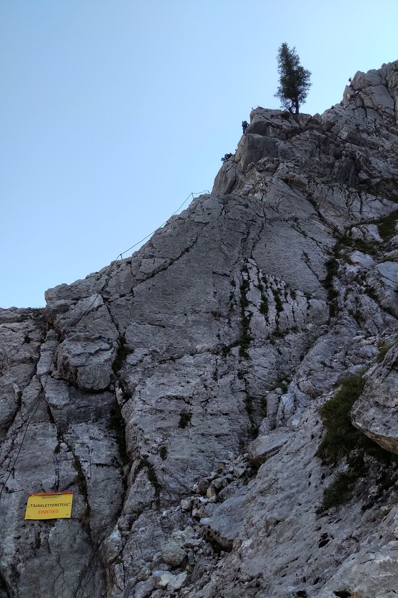 Mit dem ersten Zug um 5:30 von München war's beim Hohen Gang noch relativ leer, und auch beim Einstieg in den Tajakante-KS hab ich ein gutes Zeitfenster erwischt! Vor der Tajakante sollte man schon ein paar Klettersteige in dieser Kategorie gemacht haben, denn die Tajakante ist auch noch relativ lang.