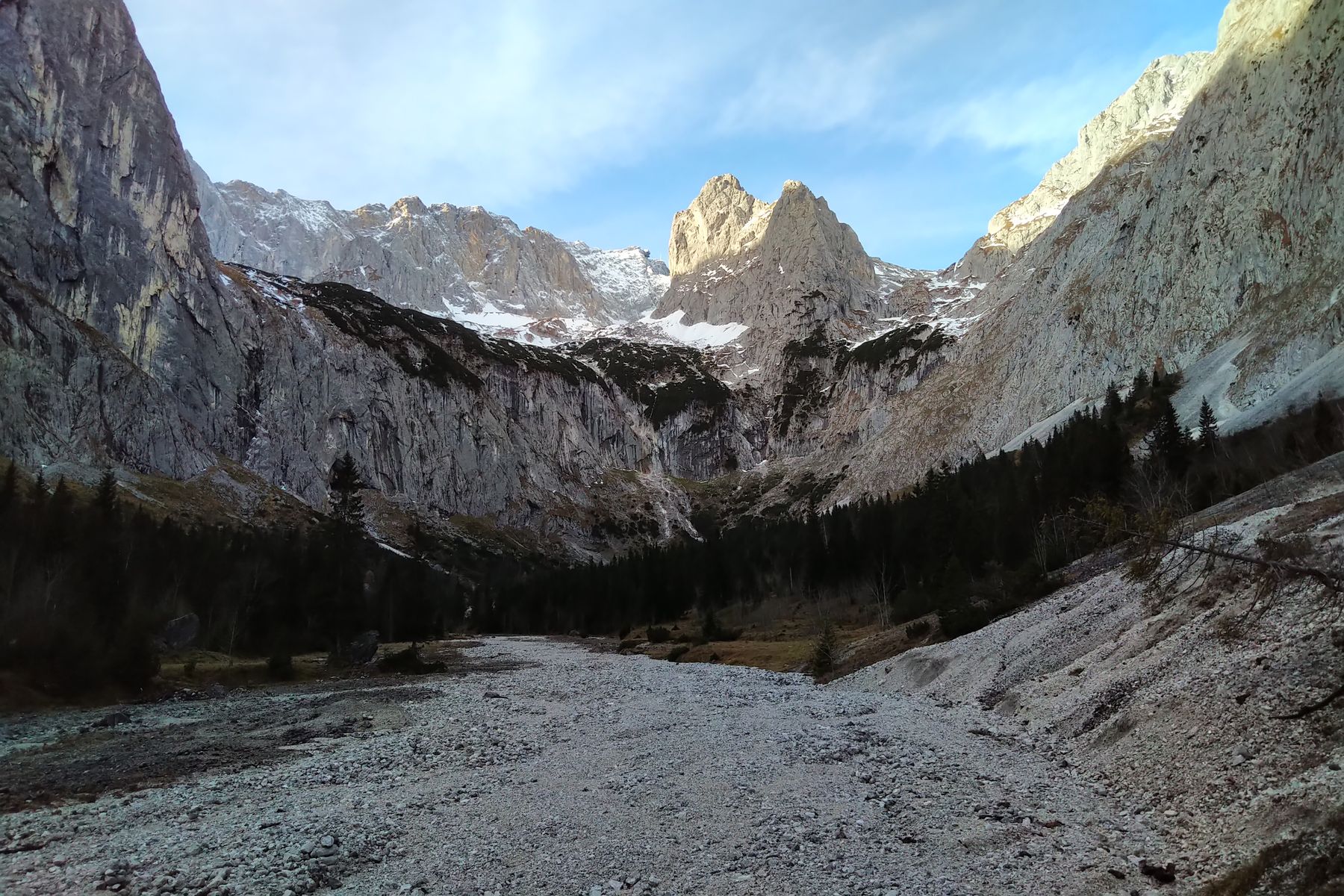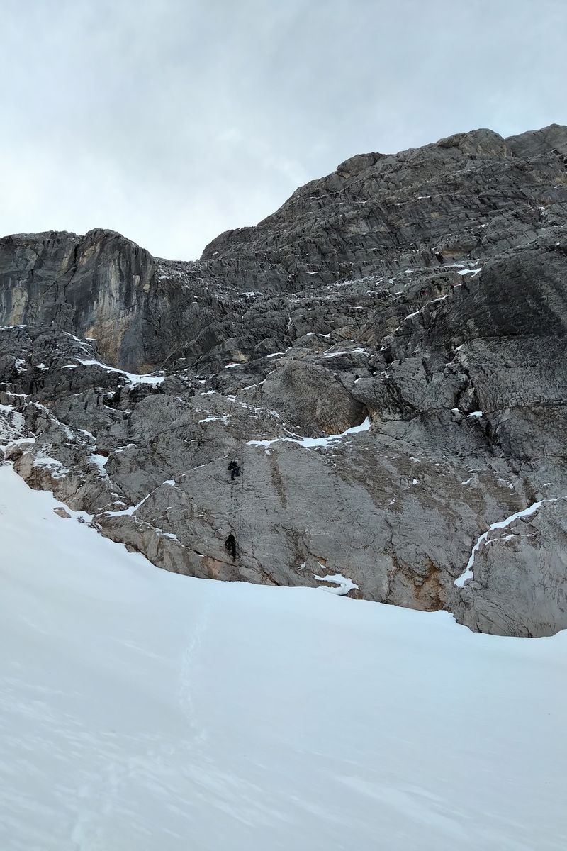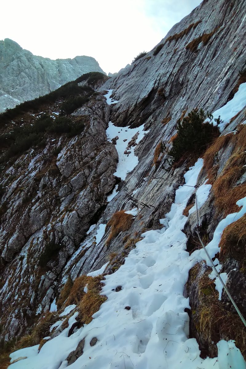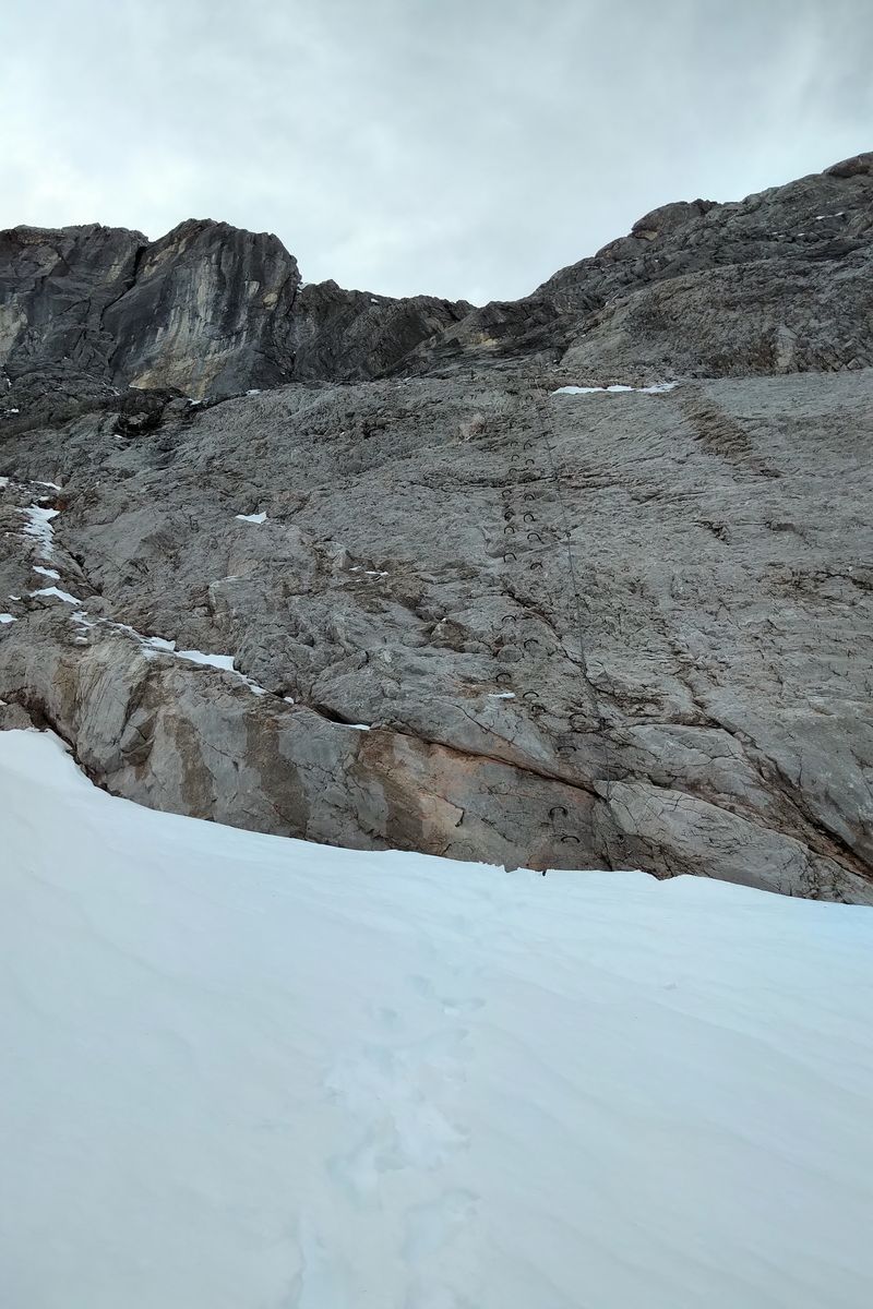 Mit dem ersten Zug um 5:30 von München war's beim Hohen Gang noch relativ leer, und auch beim Einstieg in den Tajakante-KS hab ich ein gutes Zeitfenster erwischt! Vor der Tajakante sollte man schon ein paar Klettersteige in dieser Kategorie gemacht haben, denn die Tajakante ist auch noch relativ lang.