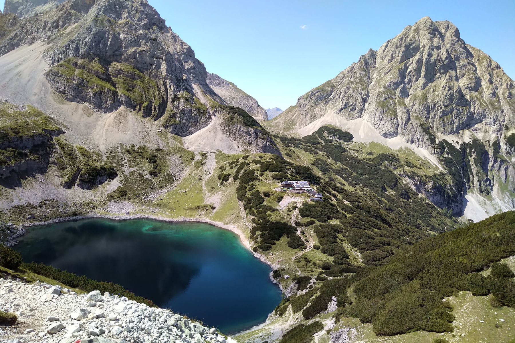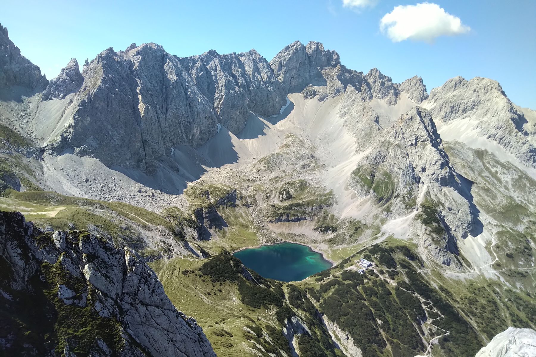 Bald kommt auch der Drachensee und die Coburger Hütte zum Vorschein. Dahinter der Grünstein - auch eine tolle Tour (Kraxelei bis zum 2. SG):