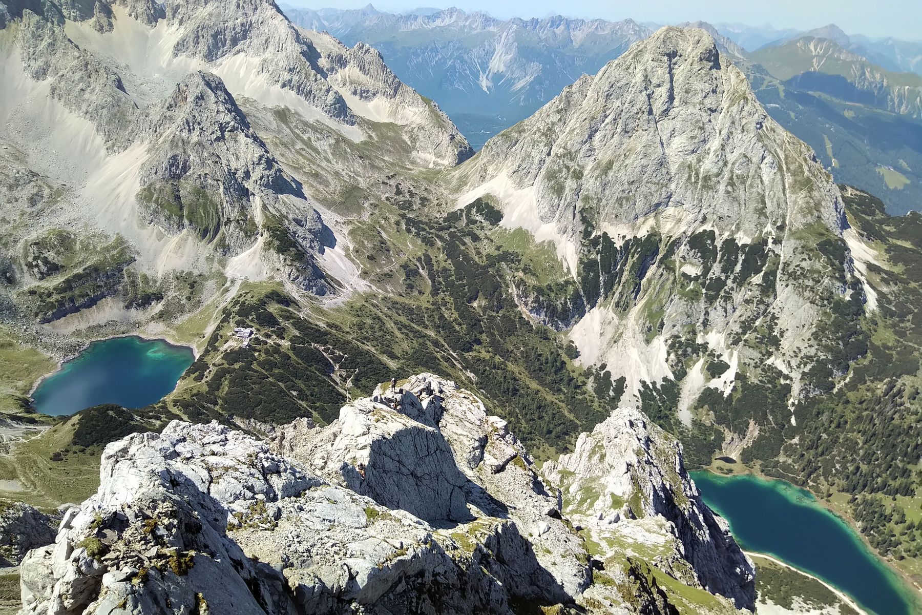 Blick vom Gipfel auf Drachensee, Seebensee und Sonnenspitze: