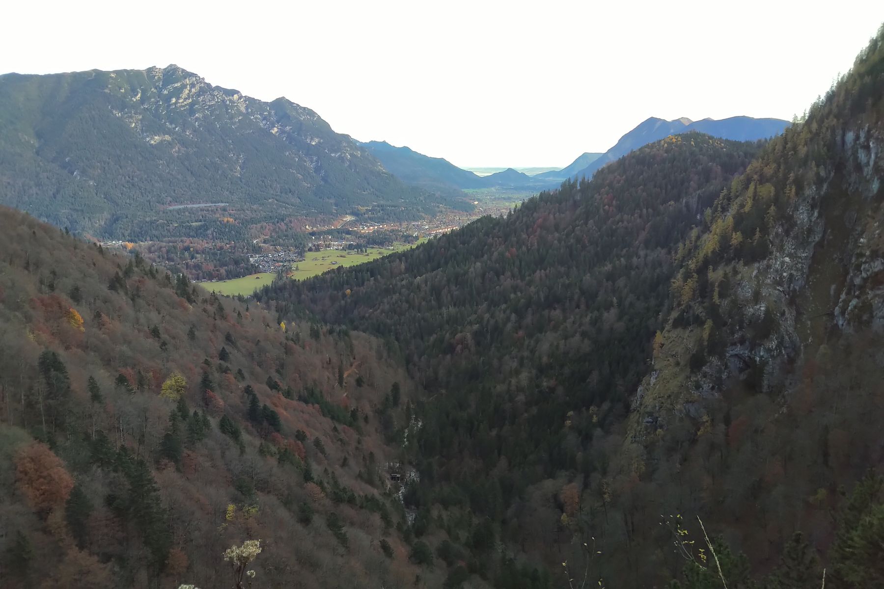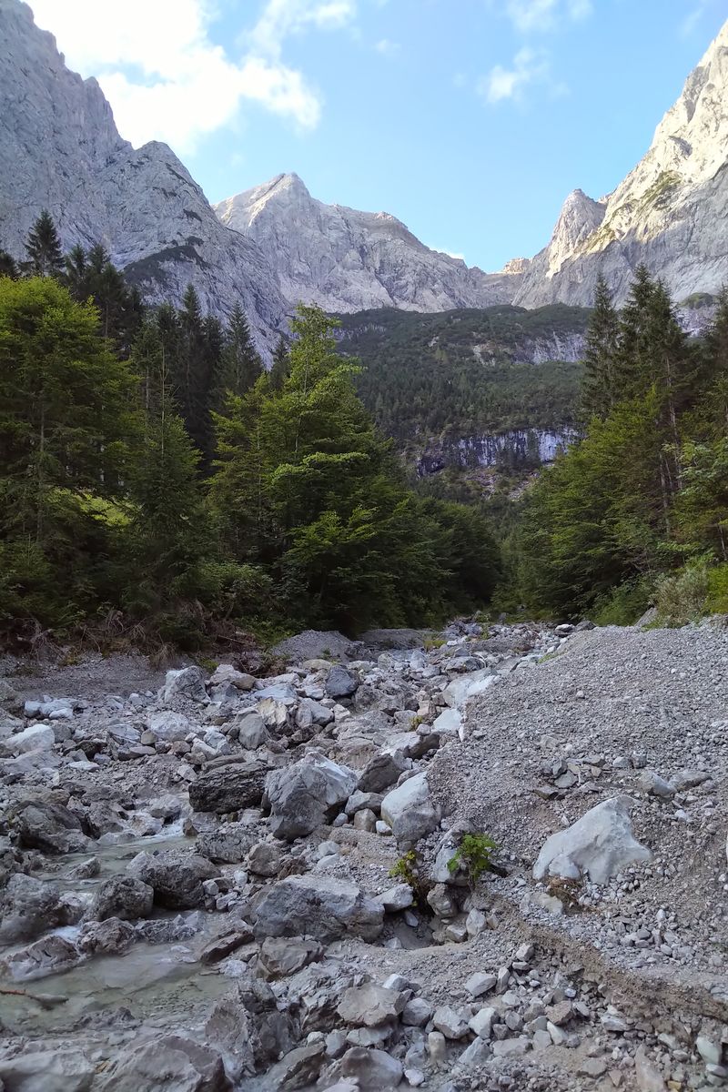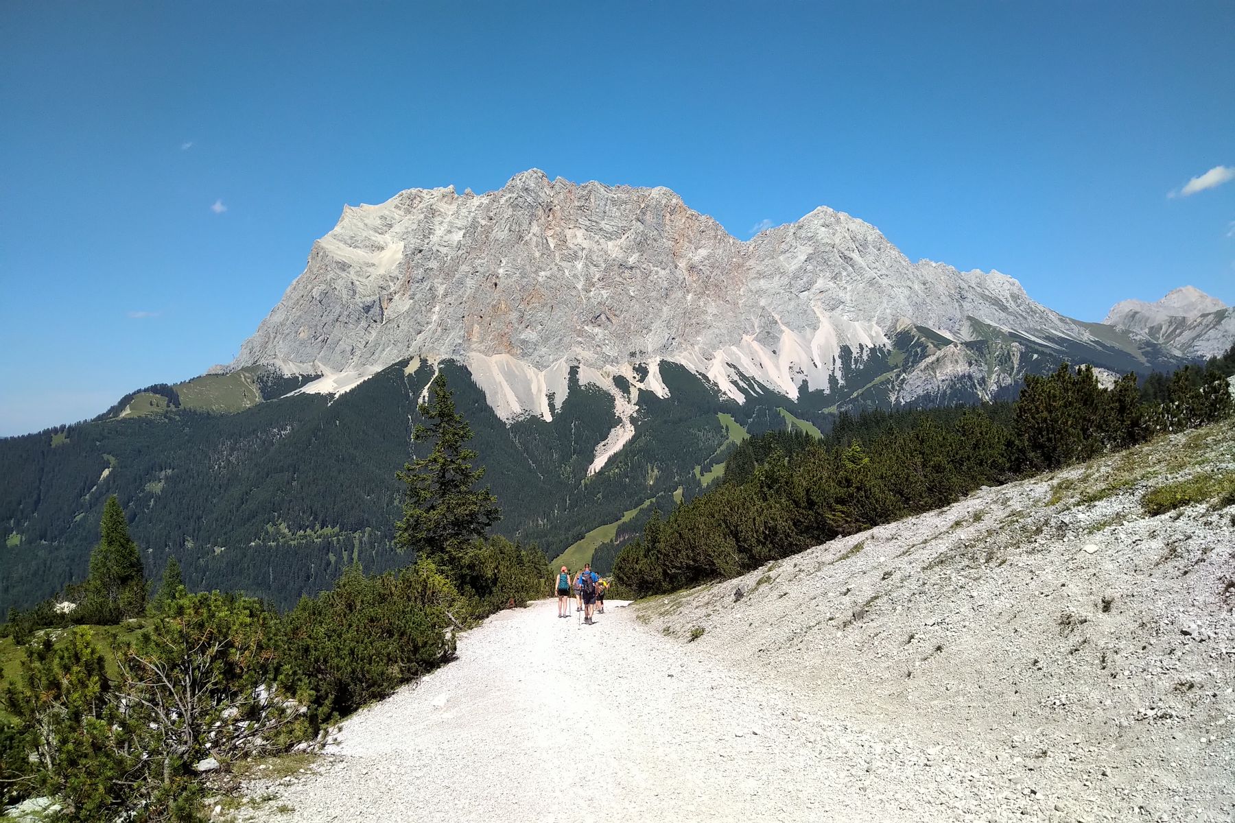 Zwischen Seebensee und dem Abzweig zum Immensteig bin ich kurz wieder mit den Massen mitgeschwommen, die tolle Aussicht aufs Wetterstein (hier Schneefernerkopf, Zugspitze ist verdeckt) konnte ich trotzdem genießen: