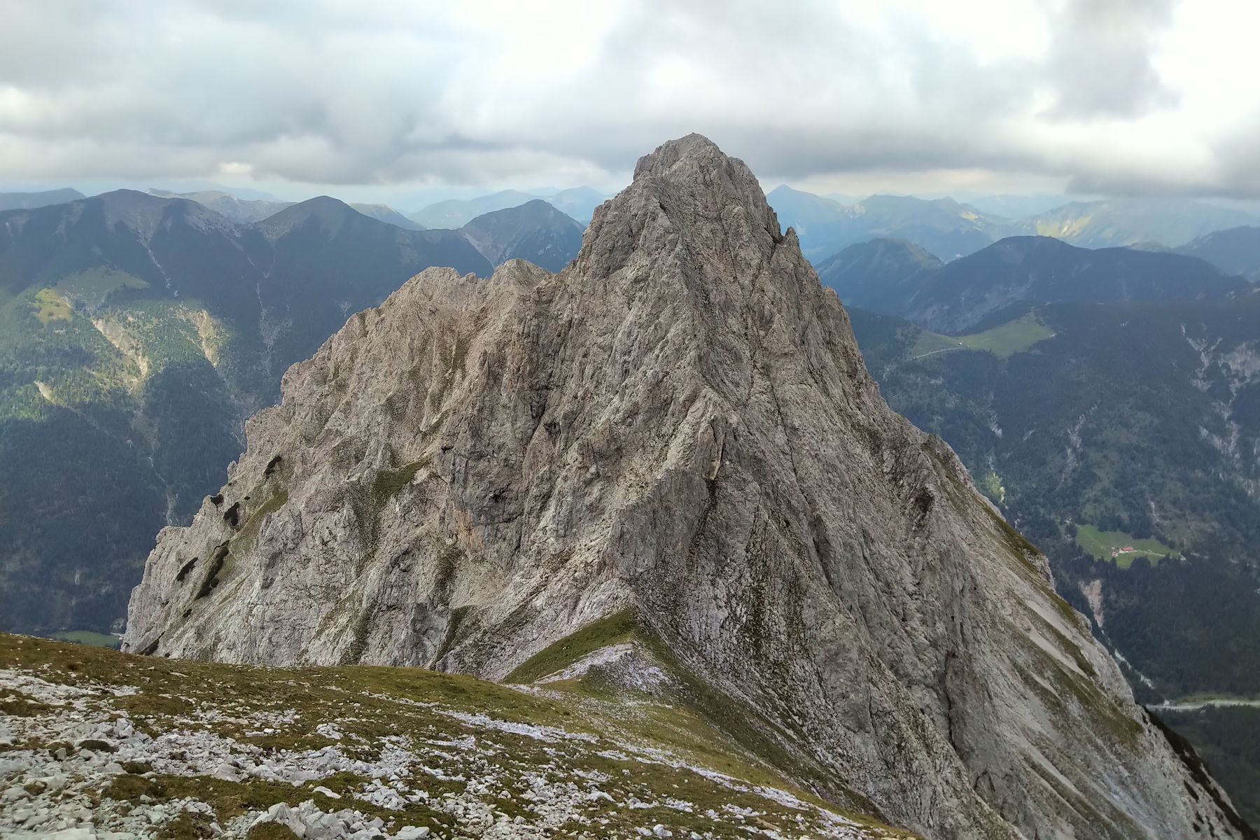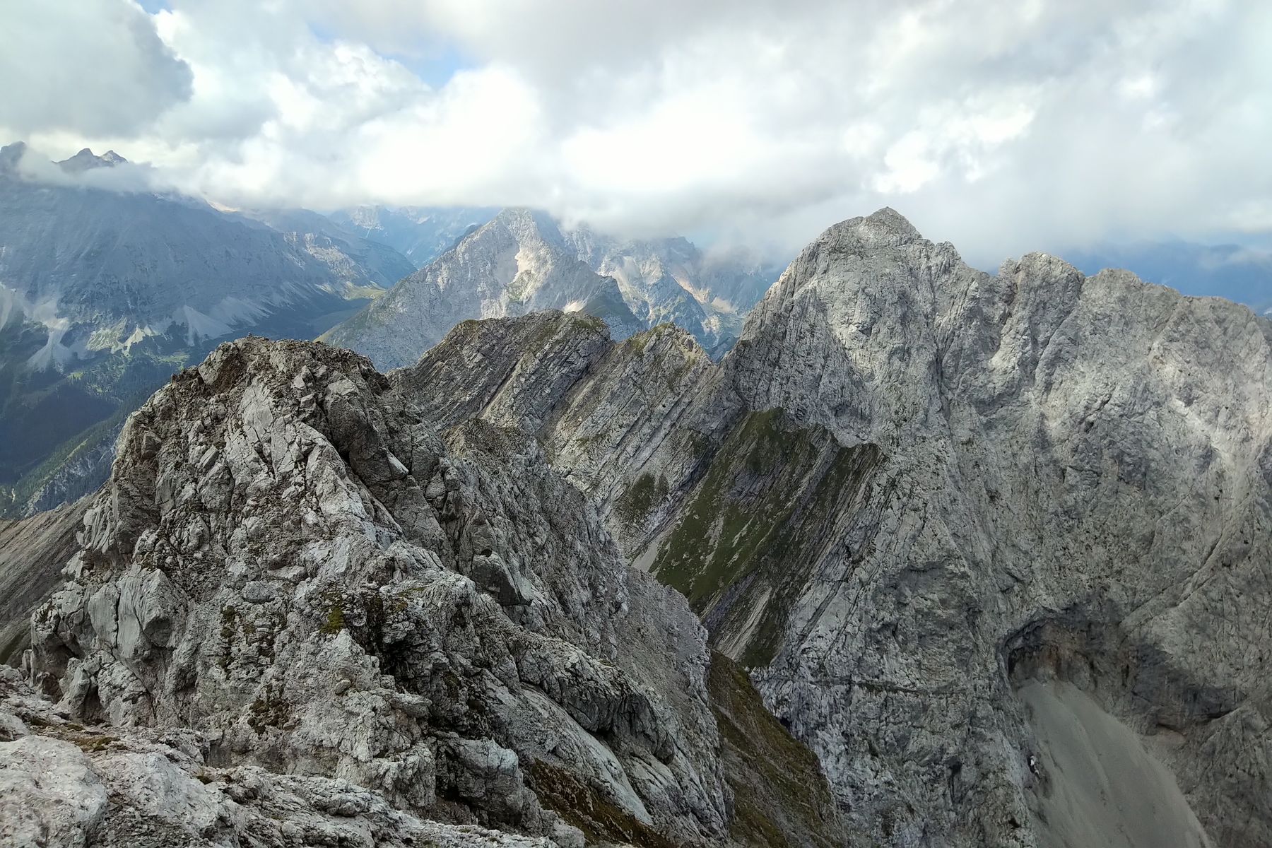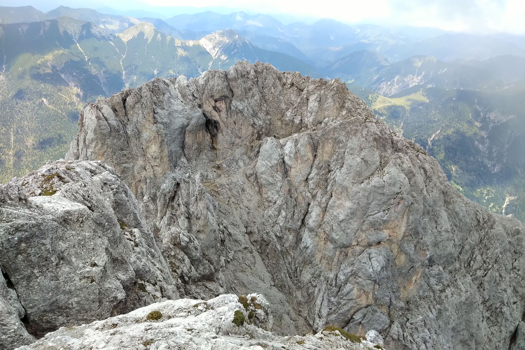 Beim Abstieg zum Drachensee. Hinten sieht man gut die tatsächliche Neigung bei der Überschreitung der Ehrwalder Sonnenspitze (von einigen Blickwinkeln sieht sie ja sacksteil aus):