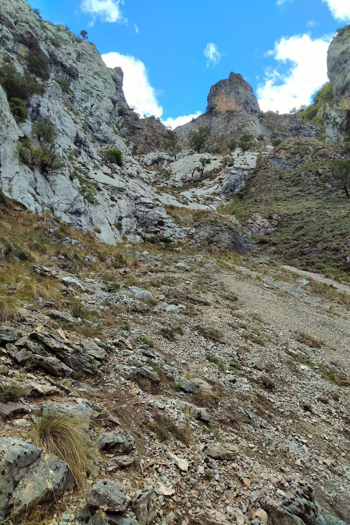 Der Weiterweg zum Gipfel ist im Sommer vermutlich T3, aktuell gibt es ein paar leichte Kraxel-Stellen (1-), um die wenigen vereisten Stellen zu umgehen: