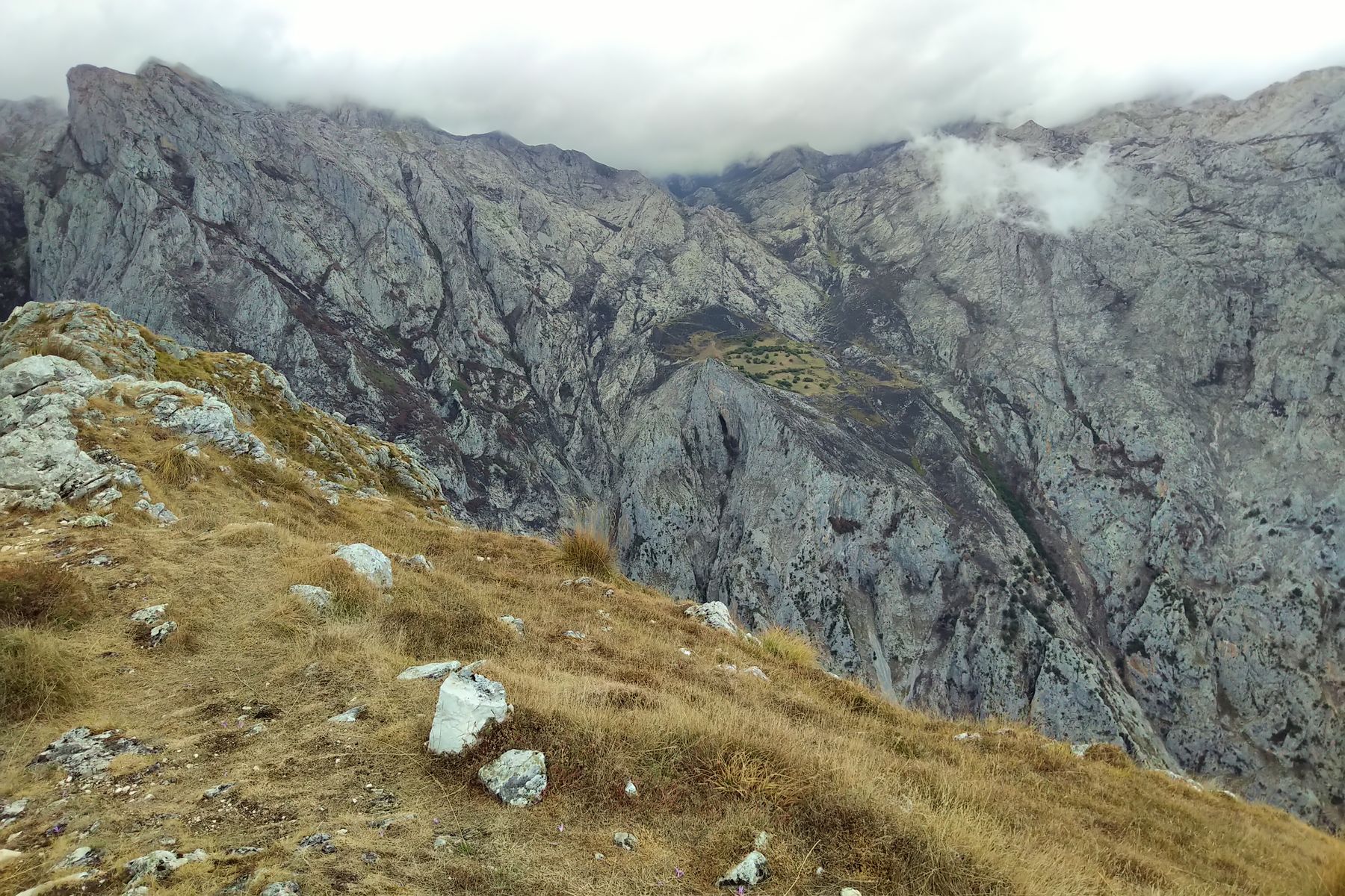 Blick zurück Richtung Längentaler Scharte, dahinter der Sulzkogel. Im Vordergrund unser Versuch, wieder auf die Hauptroute zum Hochreichkopf zu kommen (hier waren wir schon wieder im Abstieg):