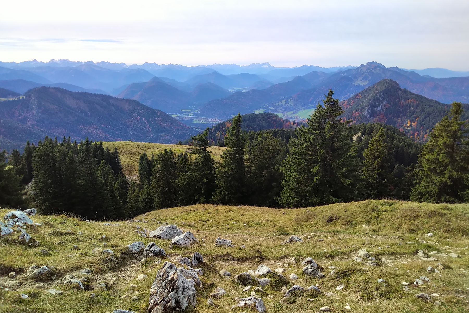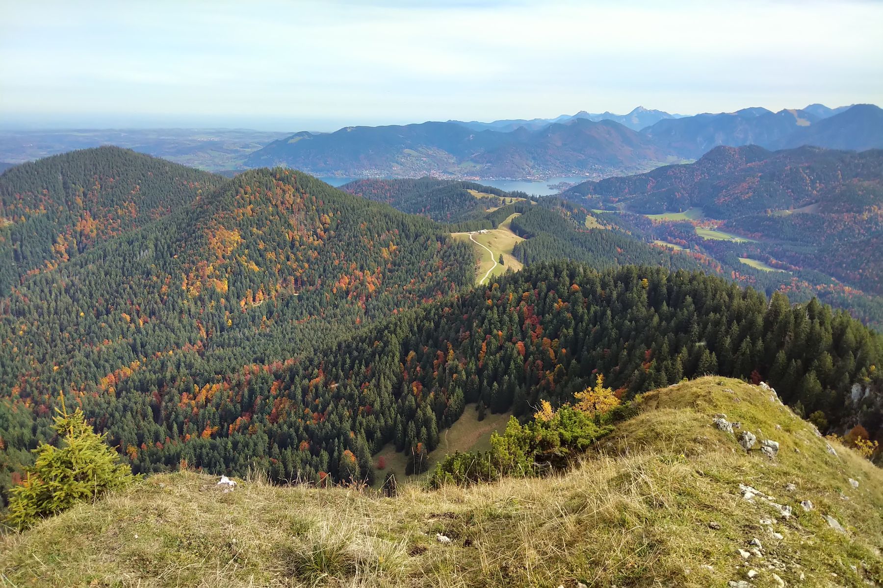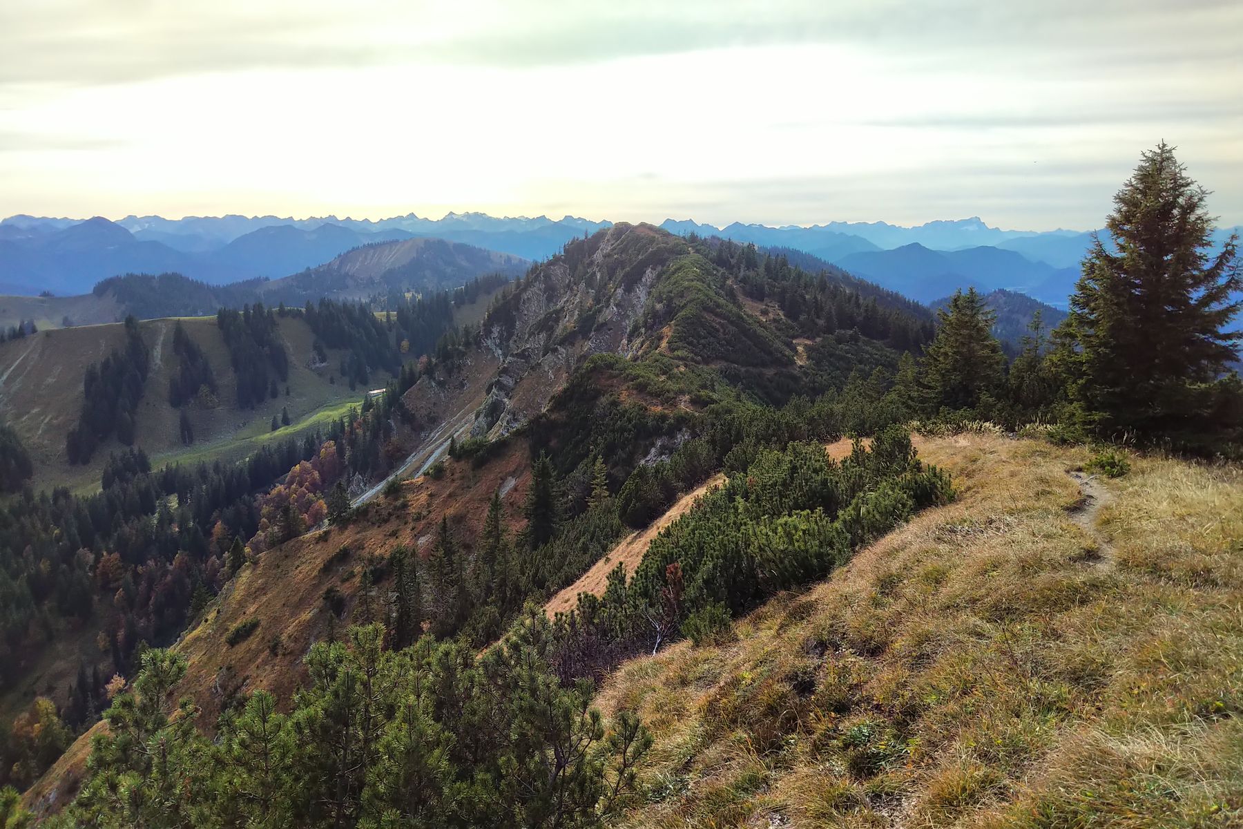 Gipfelblick vom Silberpfennig: links der Rücken zum kleinen Silberpfenning, rechts unten der untere Bockhart-Stausee: