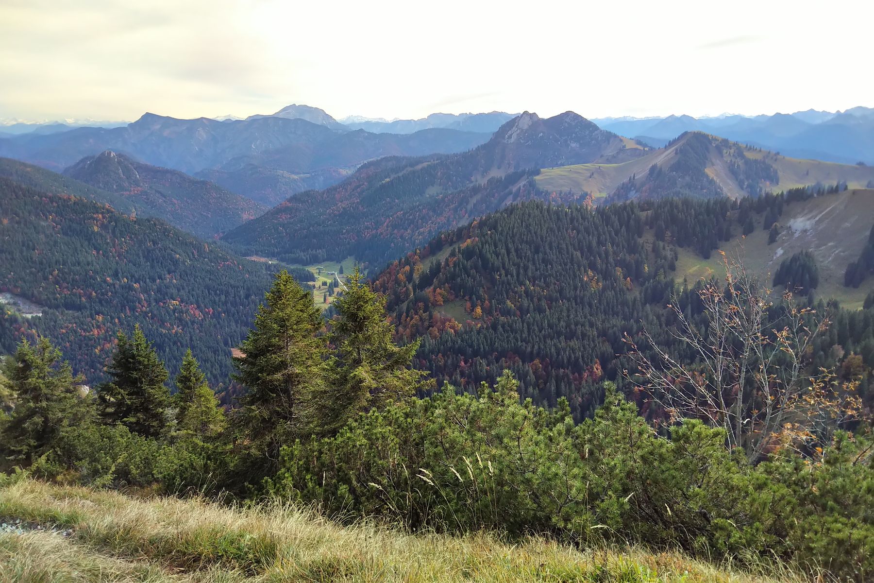 Blick vom Dristkopf-Gipfel, im mittleren Hintergrund unsere beiden anderen Touren: Östlicher Salzachgeier (links) und Aleitenspitze (rechts):