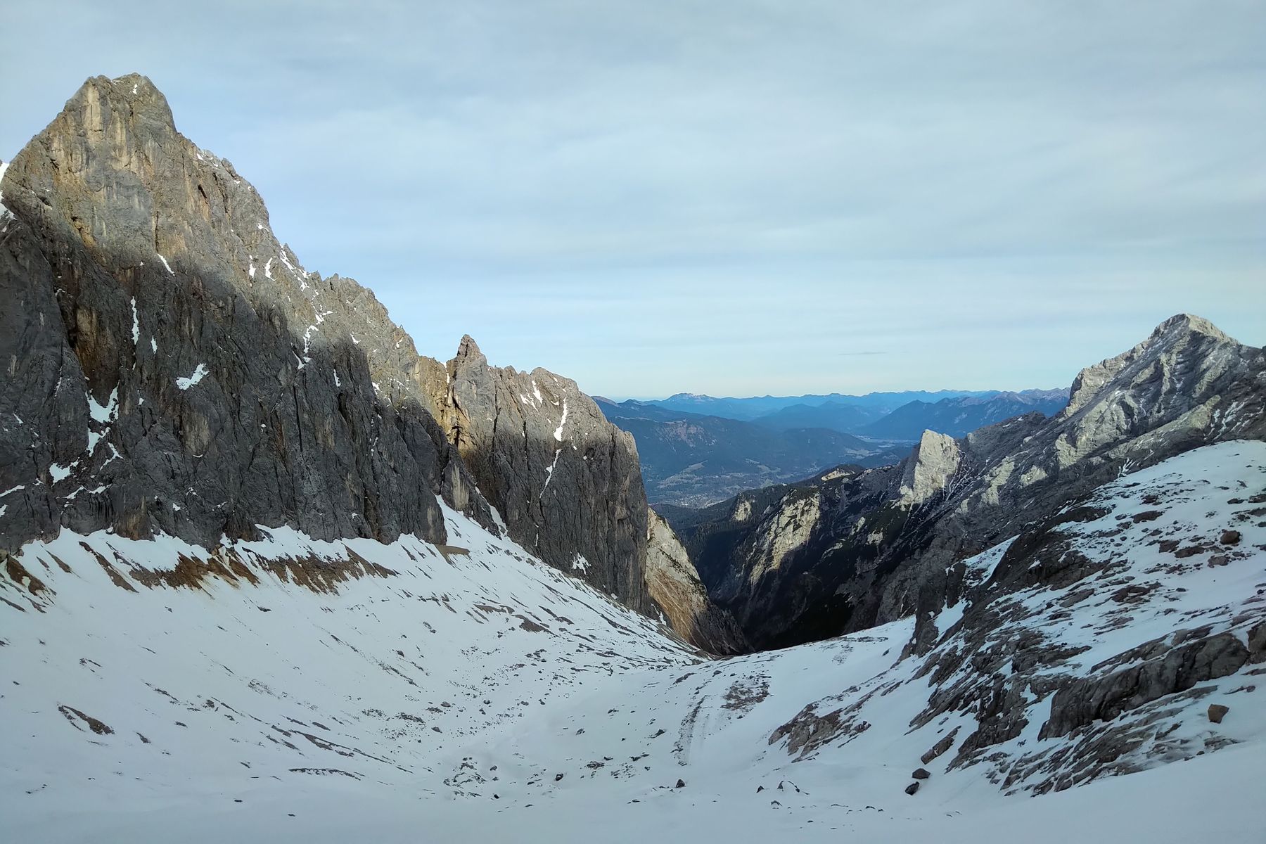 Im Nachhinein wäre es am Samstag wohl doch ok gewesen, aber nicht nach den damals verfügbaren Infos (Neuschnee + bedeckter Himmel in der Nacht). Wir sind dann am Samstag über den Seekopf-Rücken zur Kolmkarspitze, was trotz teilweise Brems-Schnee in der Abfahrt eine schöne Tour war.