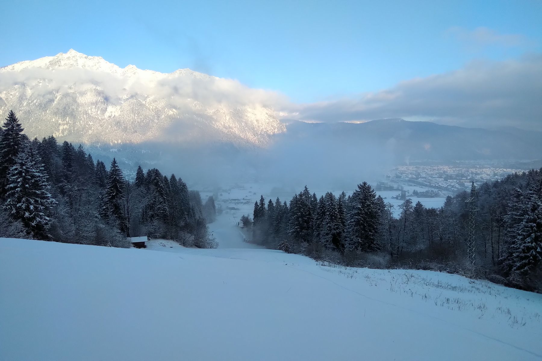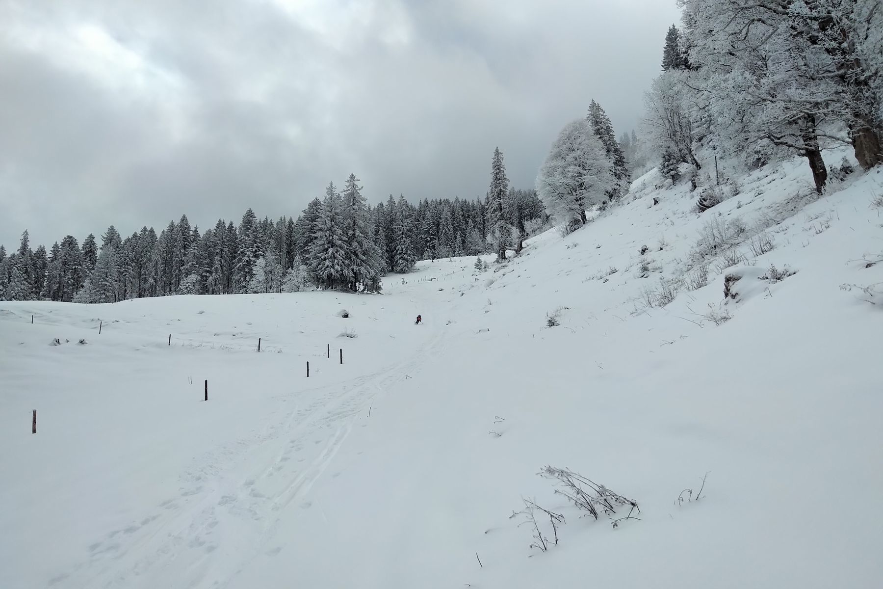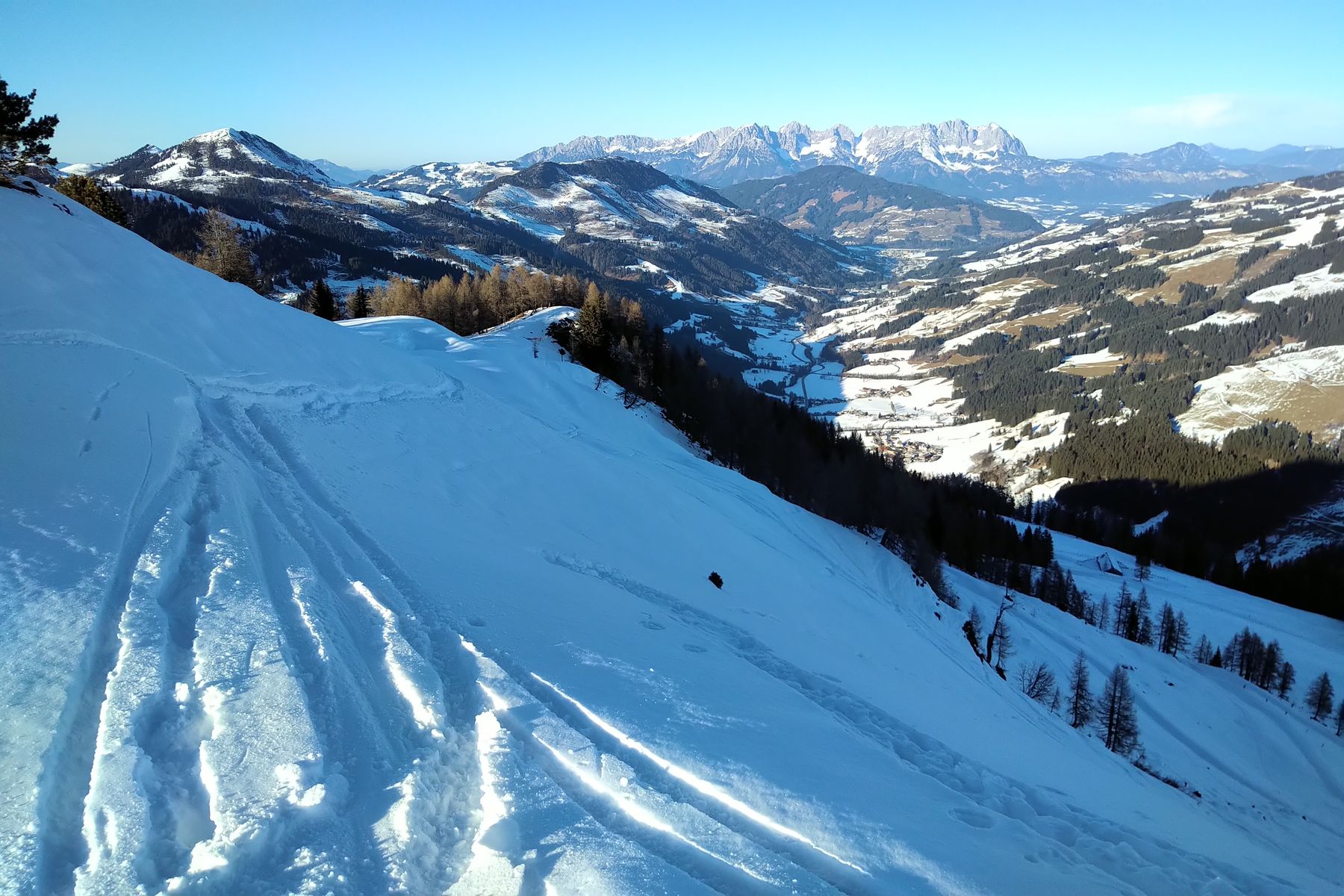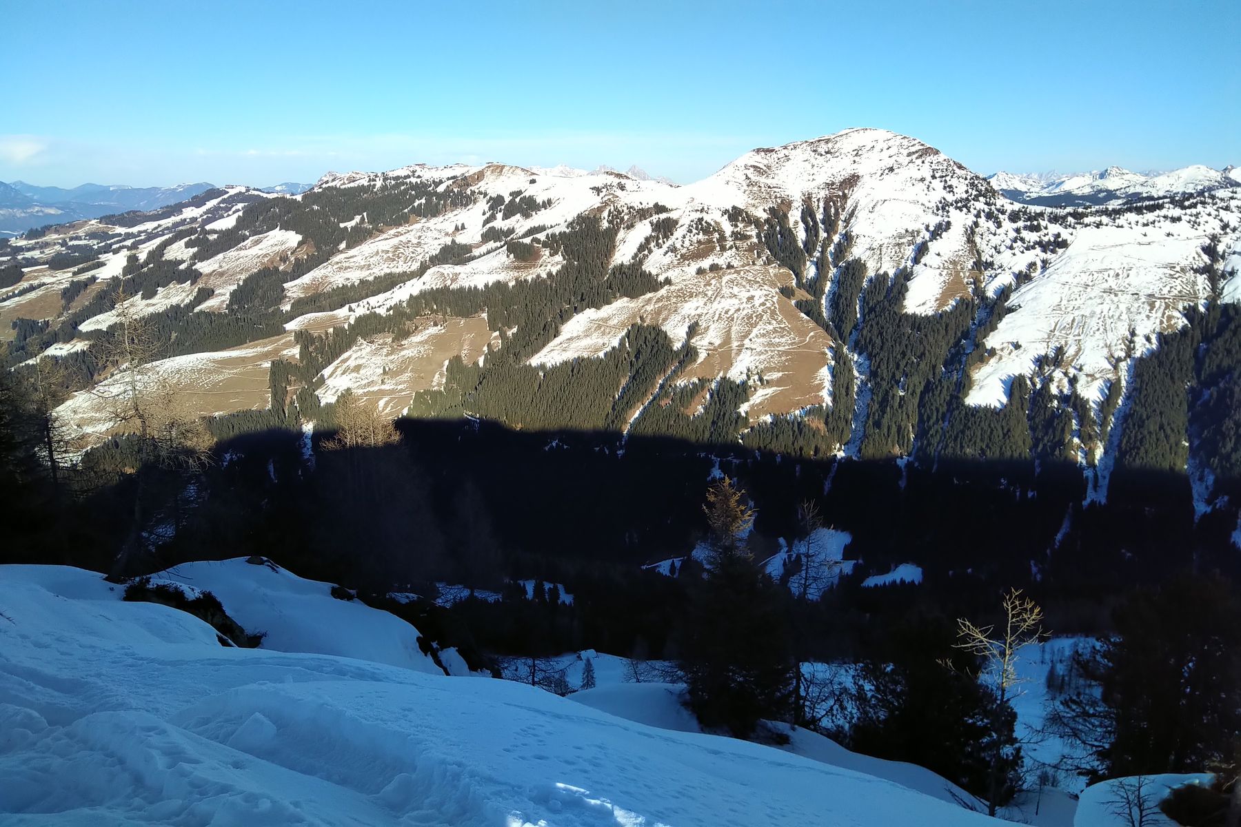Der Latschengürtel ging durch den Neuschnee deutlich besser (setzt trotzdem sicheres Abfahren voraus). Und auch die Passage durchs Unterholz nach der Riedereckalm lief im Vergleich zur Vorwoche ziemlich flüssig!