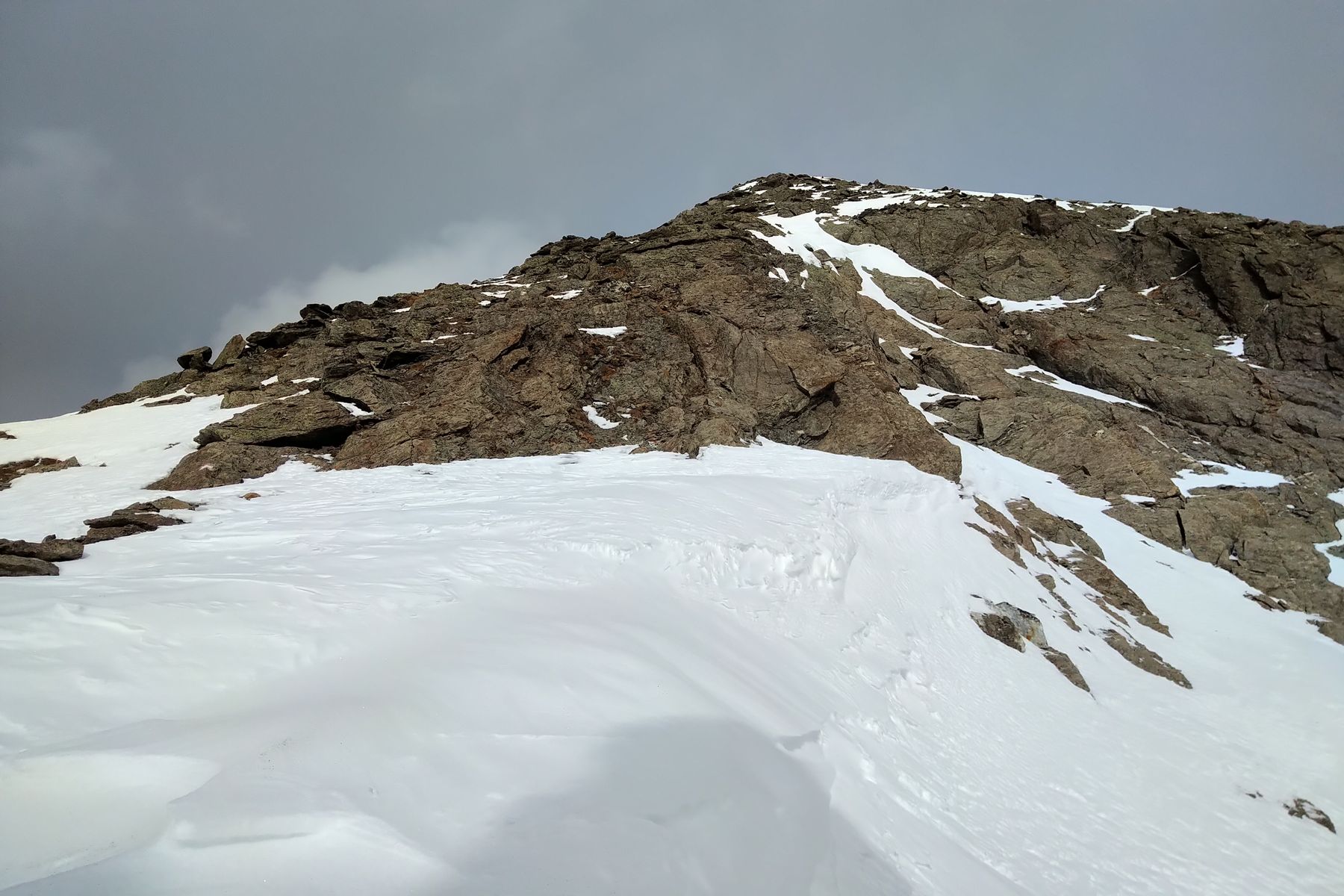 nachmittägliche Erkundungstour wegen angesagter schlechter Sicht für Sonntag - Blick von der Schulter auf den Gipfelgrat zur Aleitenspitze: