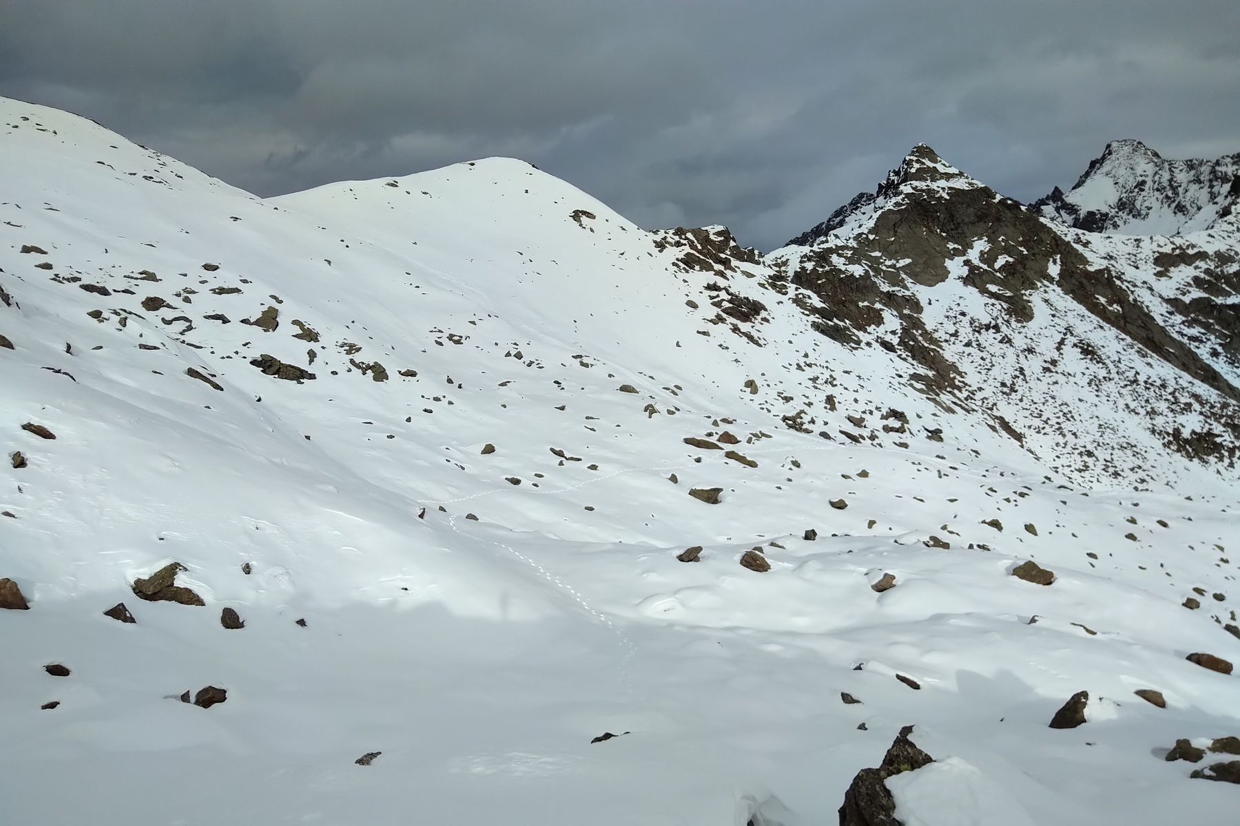 Ab dem Grieskogelferner musste ich neu einspuren bzw. nachspuren - hier die Steilstufe zwischen 3000 und 3100 m: