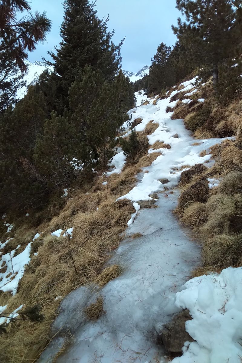 • Man kann von der Pforzheimer Hütte noch bis Sankt Sigmund abfahren, ausreichend Schnee! Im untersten Teil bei der Rodelbahn mit Eisunterlage, nachmittags aber unproblematisch zu fahren