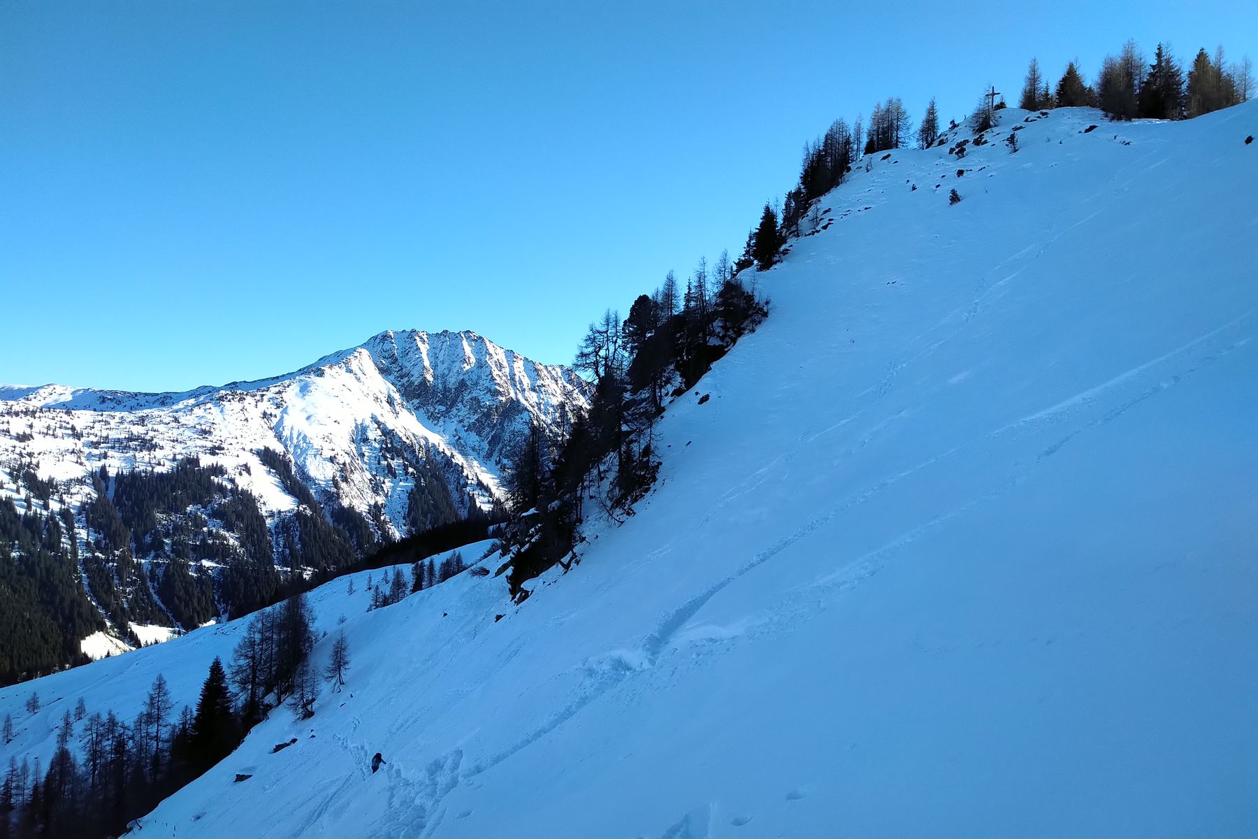 Der Hang bis zur Siebli-Alm war auch ziemlich gut zu fahren, dort könnten sich die Schneeverhältnisse aber bald wieder verschlechtern (wenn nicht ausreichend Neuschnee nachkommt).