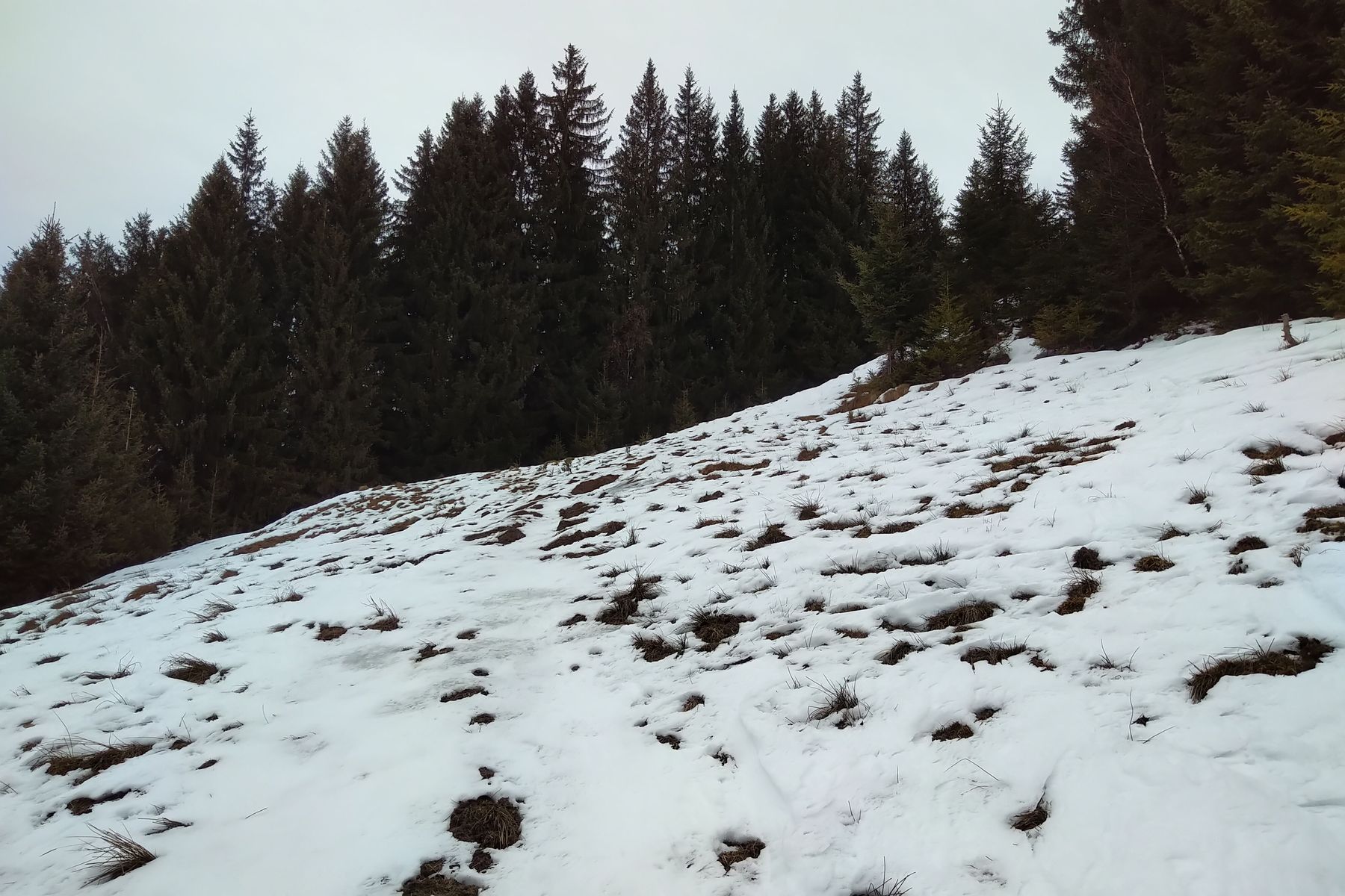 Auf dem Forstweg ist der Schnee noch oft ausreichend - außenrum ist das meiste schon grün: