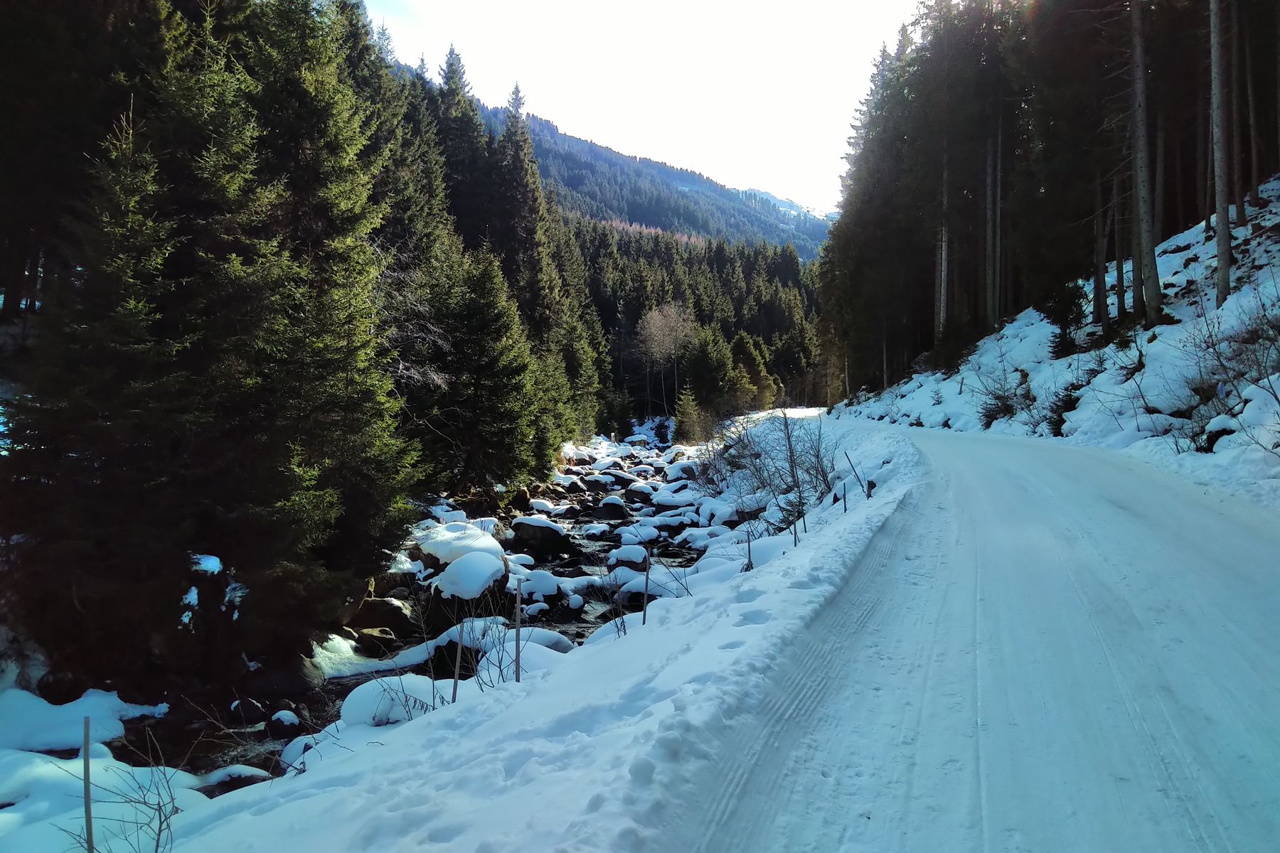 Forststraße zum Großteil gut bedeckt (vom Parkplatz weg) - endlich mal wieder eine Winterlandschaft!