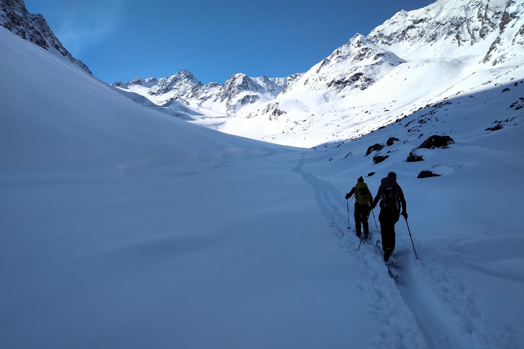 • Freitag: Anfahrt ins Sellrain (Parkplatz Eisbrücke), Aufstieg zum Gamskogel über Seiges-Alm, Abfahrt wie Aufstieg, Transfer nach Lüsens