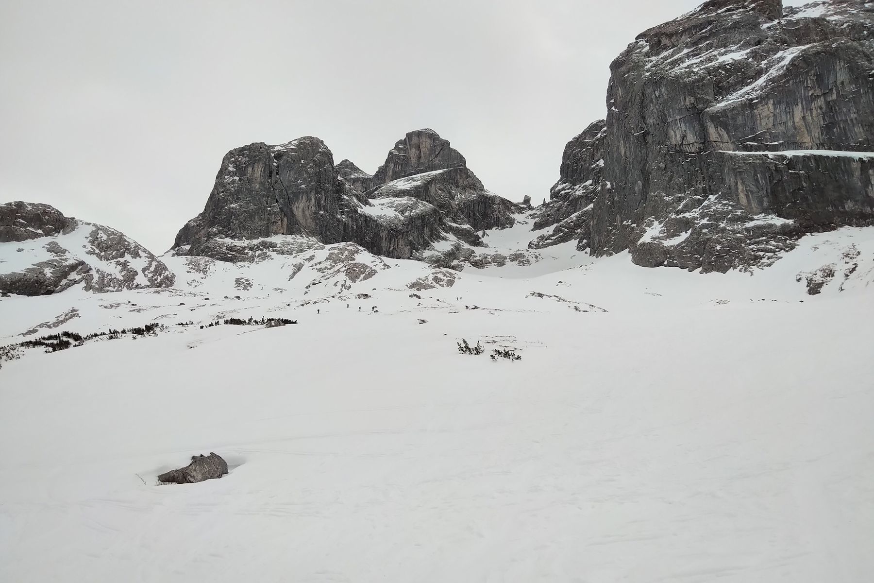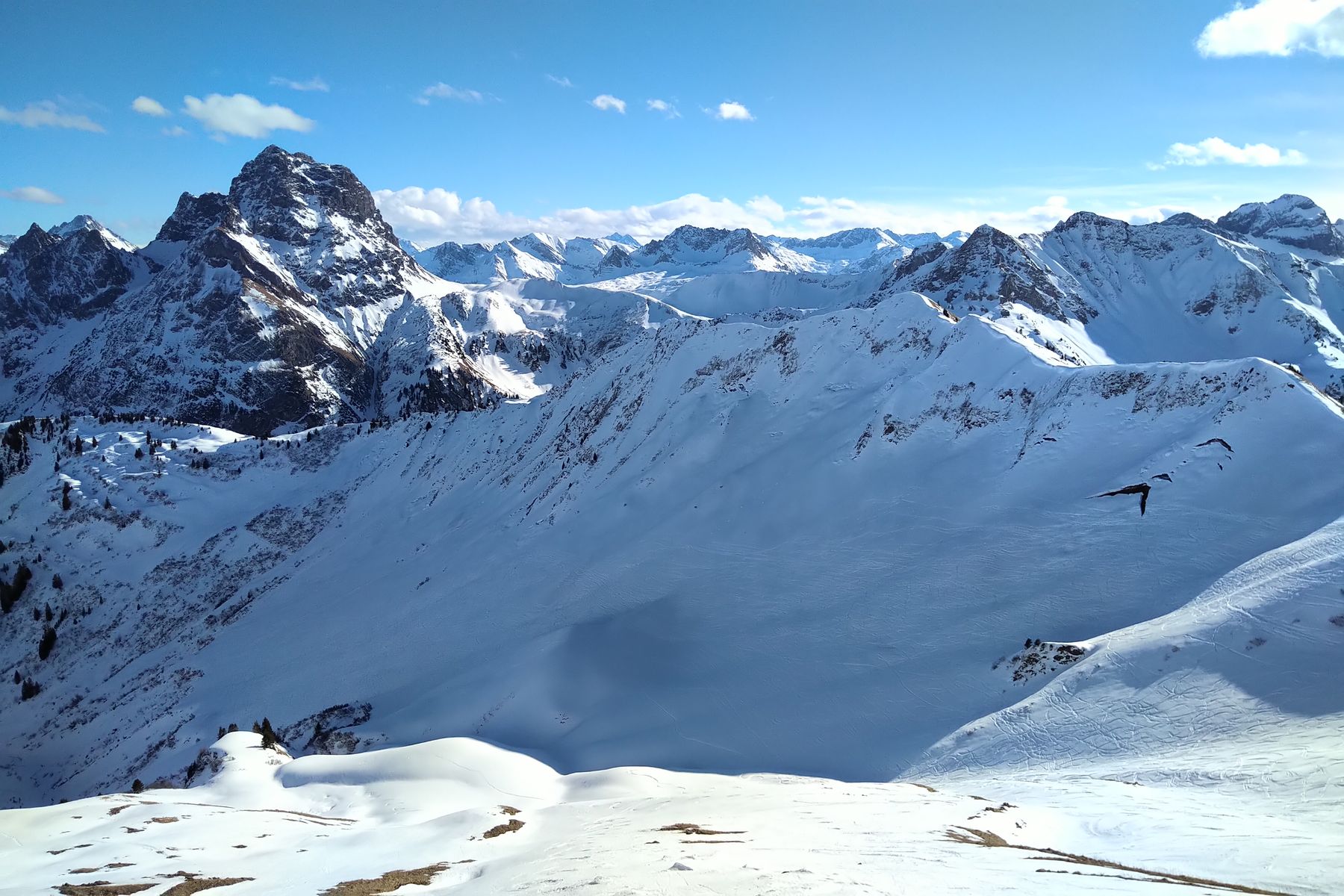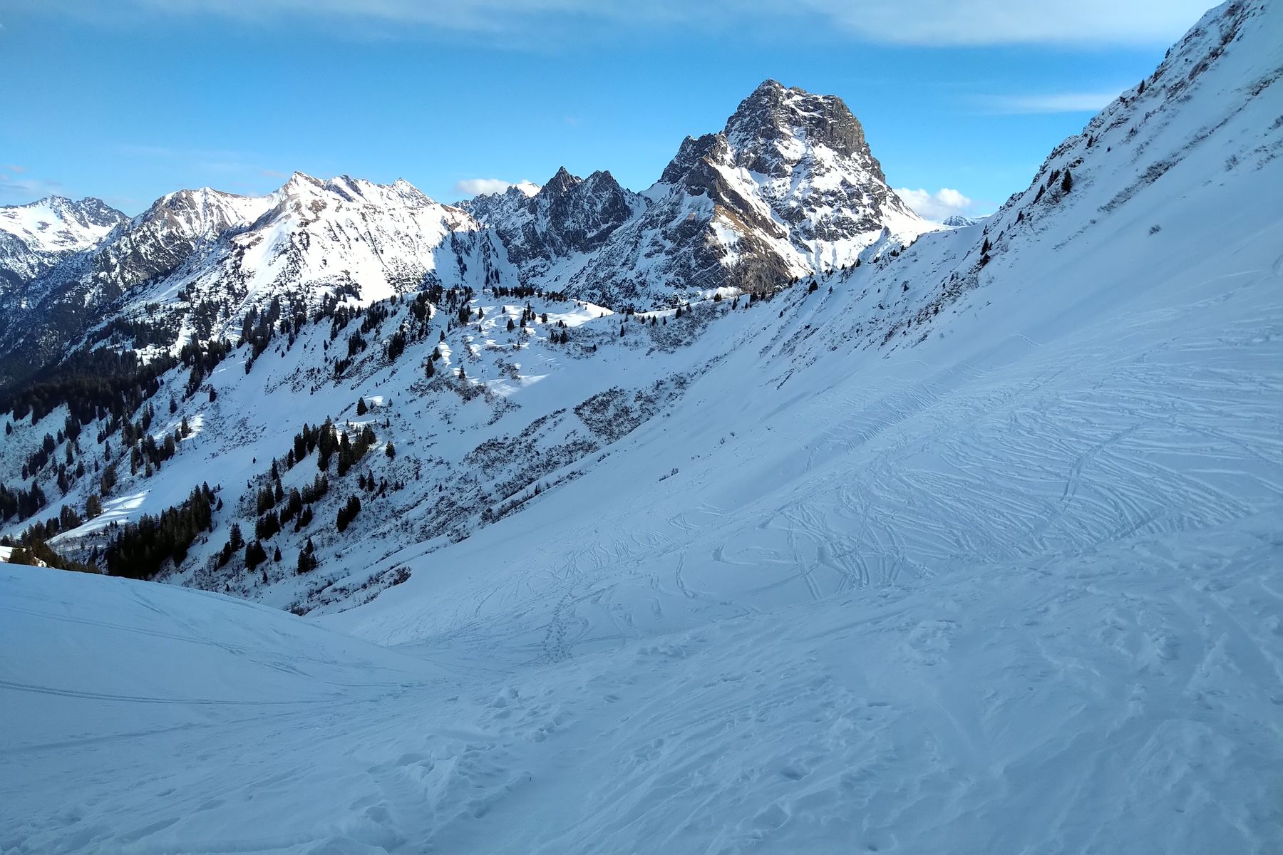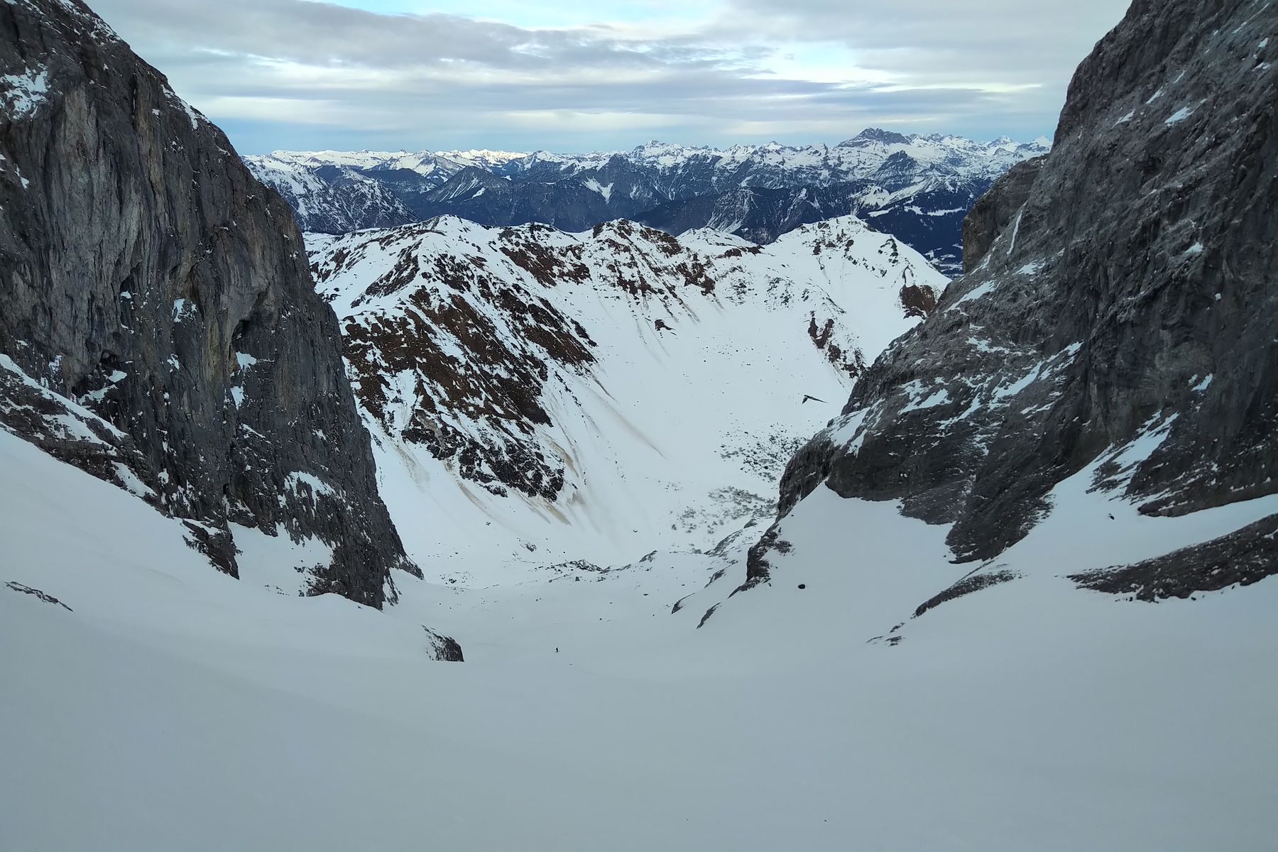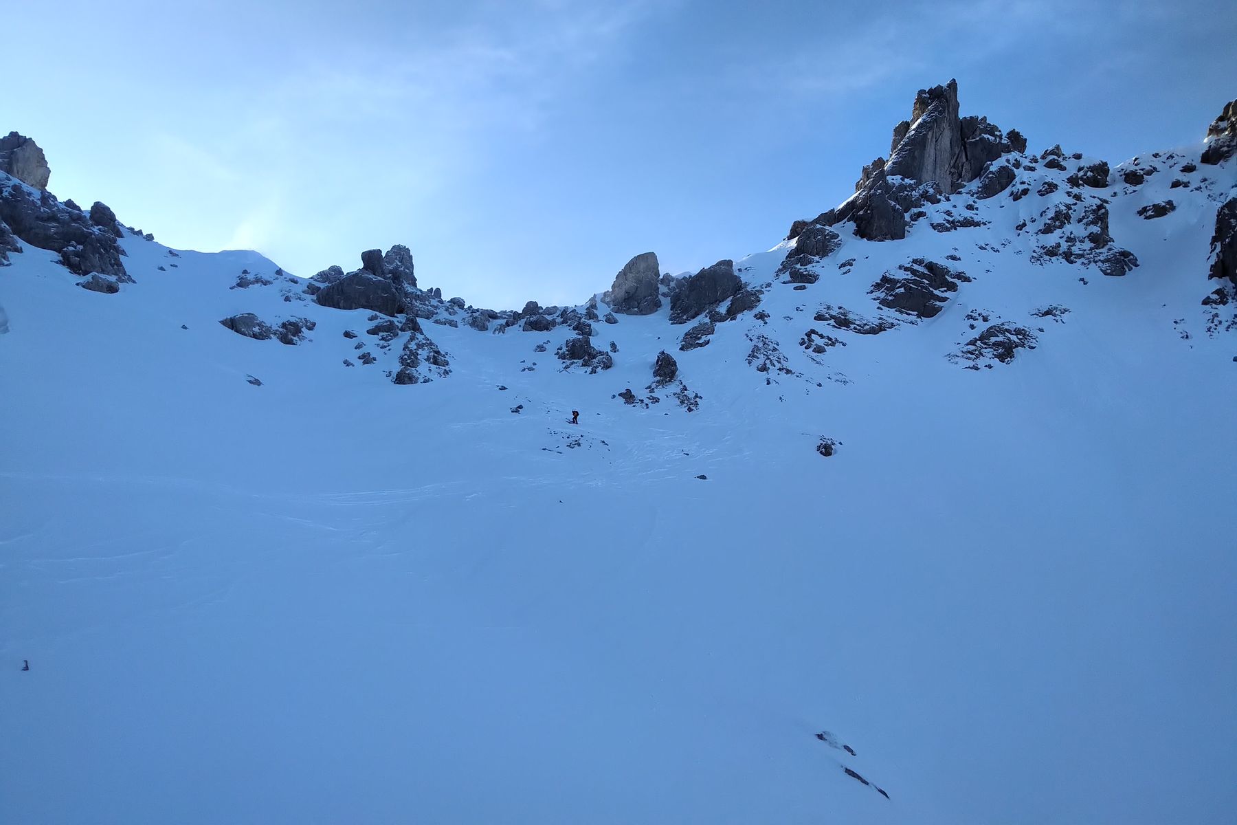Auf der Querung zum Einstieg auf dem Nordgrat waren Steigeisen hilfreich, wie auch auf dem Großteil von Nordgrat + Riepengrat. Das kann sich natürlich nach ein paar wärmeren Tagen schnell ändern. Der Riepengrat war sehr gut zu gehen, beim Einstieg ist das alte Drahtseil nicht mehr vorhanden (siehe Bericht von guenthi vor 1 Monat), stattdessen eine 25m-Abseilstelle. Den fraglichen Felsblock zum Überklettern kurz vor dem Gipfel konnte ich auch nicht wiederfinden.