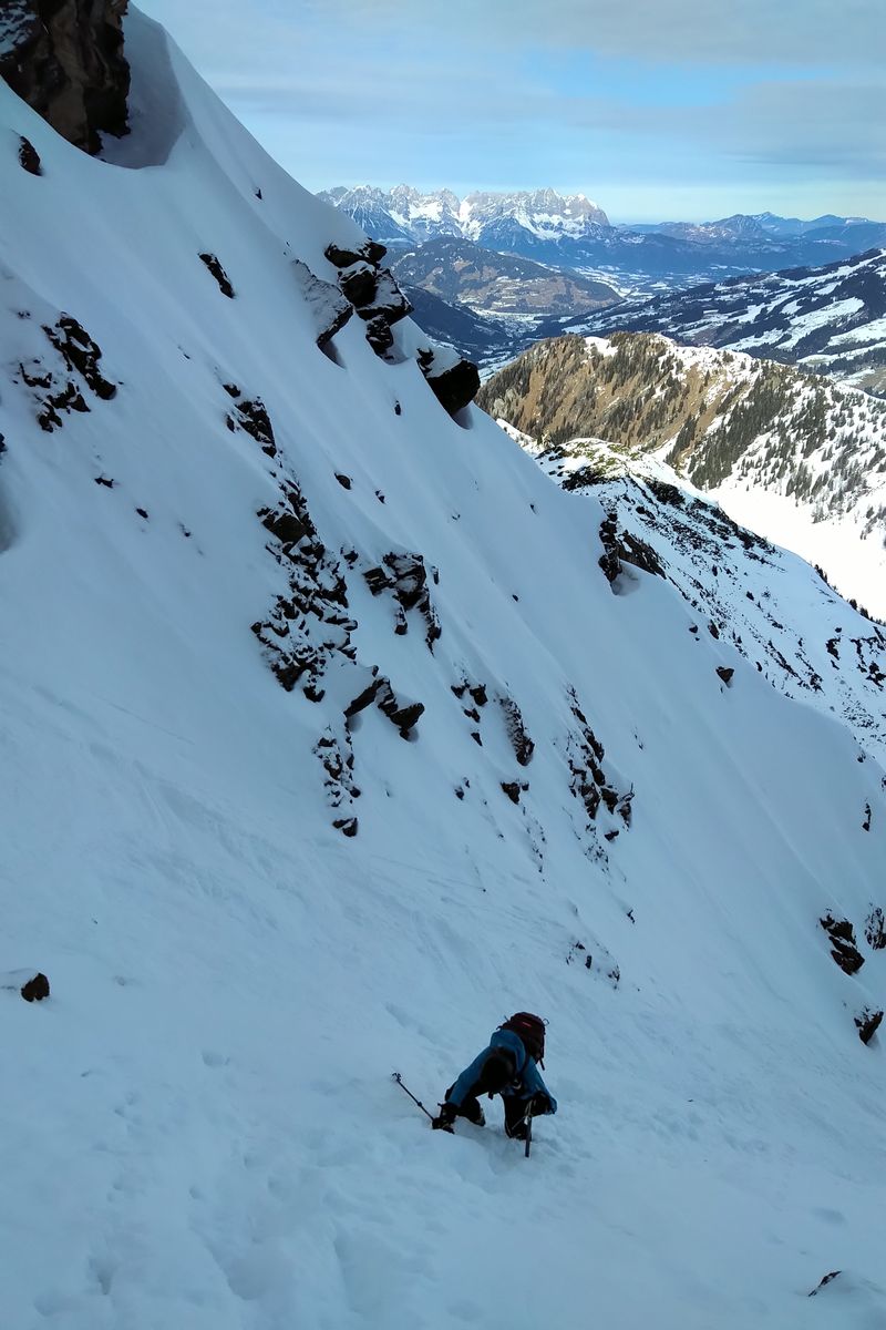 Normalerweise ist hier die Schlüsselstelle. Wegen Schnee, Eis und Nässe fand ich den Aufschwung davor aber kniffliger: