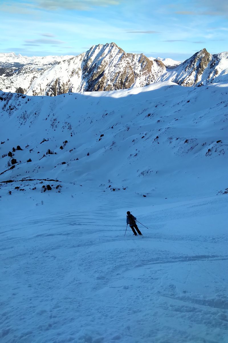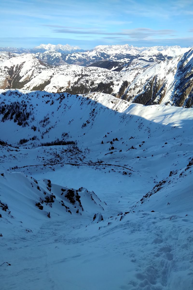 Der Abstieg vom Schneegupf bis zum Riepenkopf hat auch lange gedauert, da man erst schauen musste, wo unter dem Schnee Löcher versteckt sind. Es gab einige davon! Der Gegenanstieg zur Alpeiner Scharte war auch nochmal eine Fleißaufgabe, aber dafür gabs auf der Geraer Hütte eine schmackhafte Kaspressknödelsuppe zur Belohnung.
