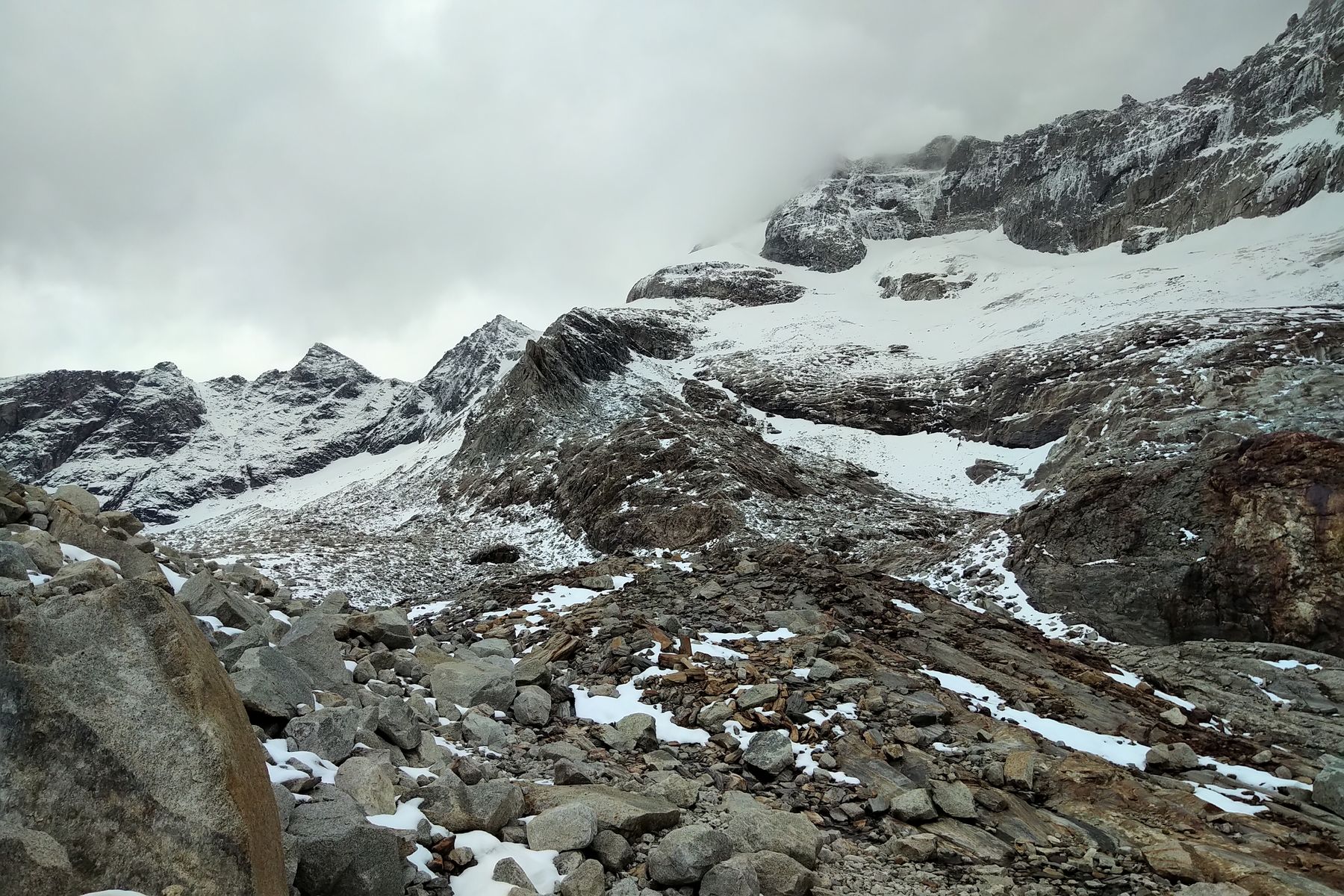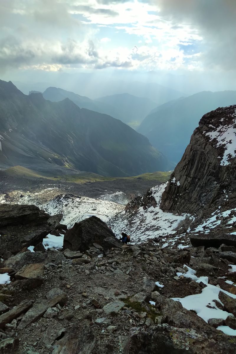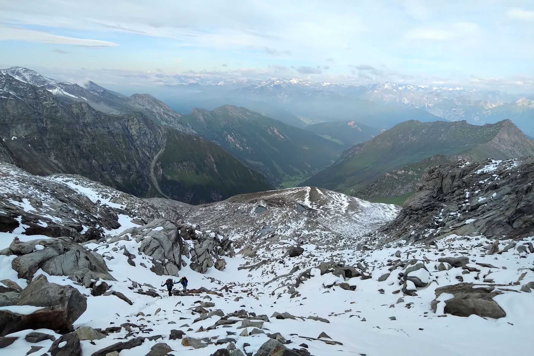 Für eine kurze Strecke waren wir unterhalb der Schneegrenze, bevor es bald wieder hochging zur Alpeiner Scharte: