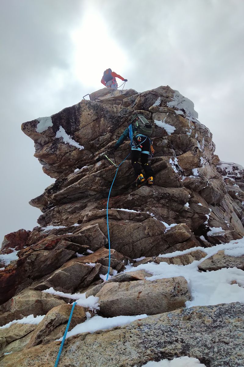 Am Einstieg von der Nordgrat-Route. Hier war die einzige Passage, bei denen wir ohne Steigeisen gegangen sind (hier war's besser ohne):
