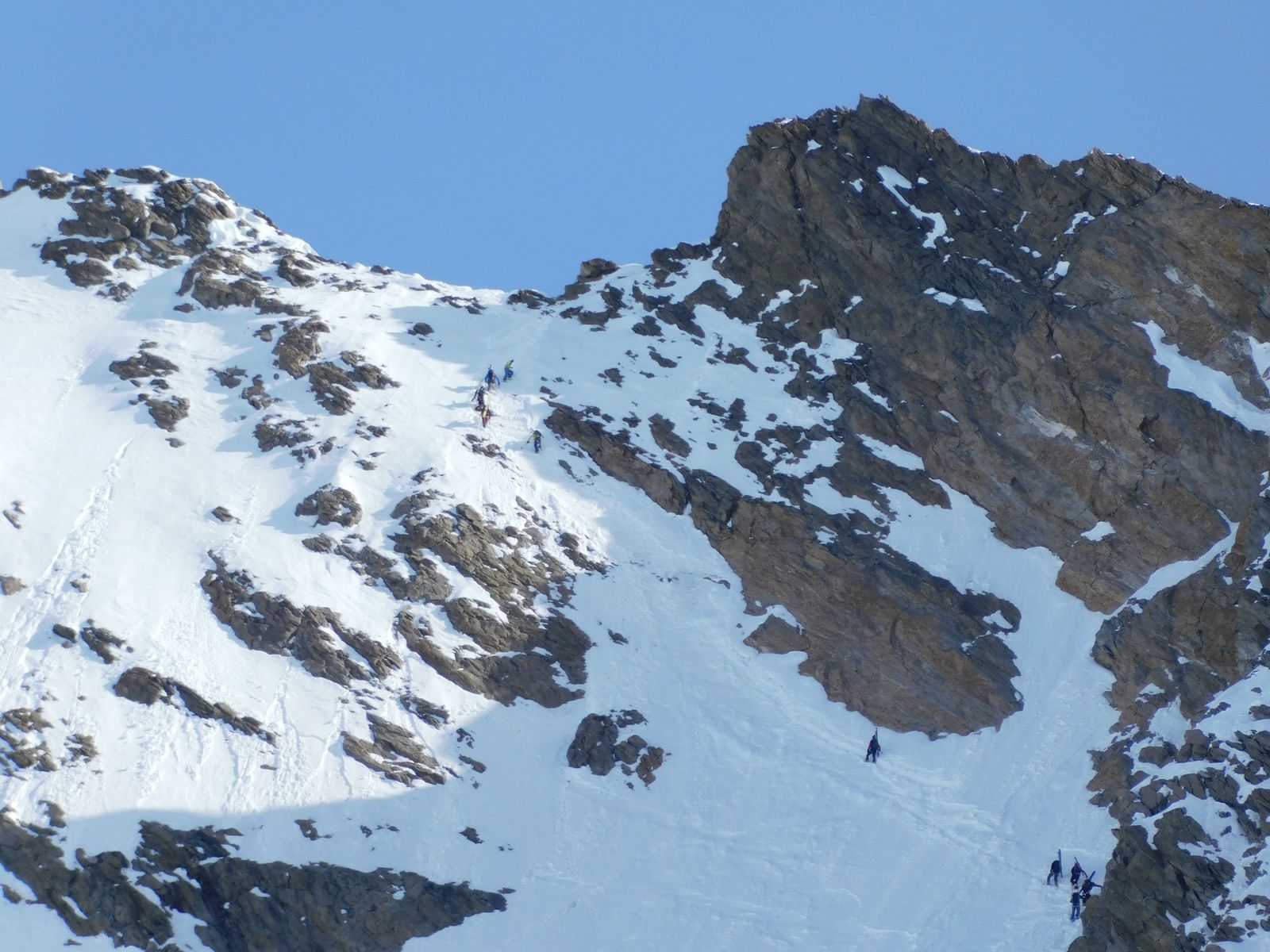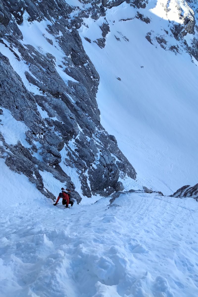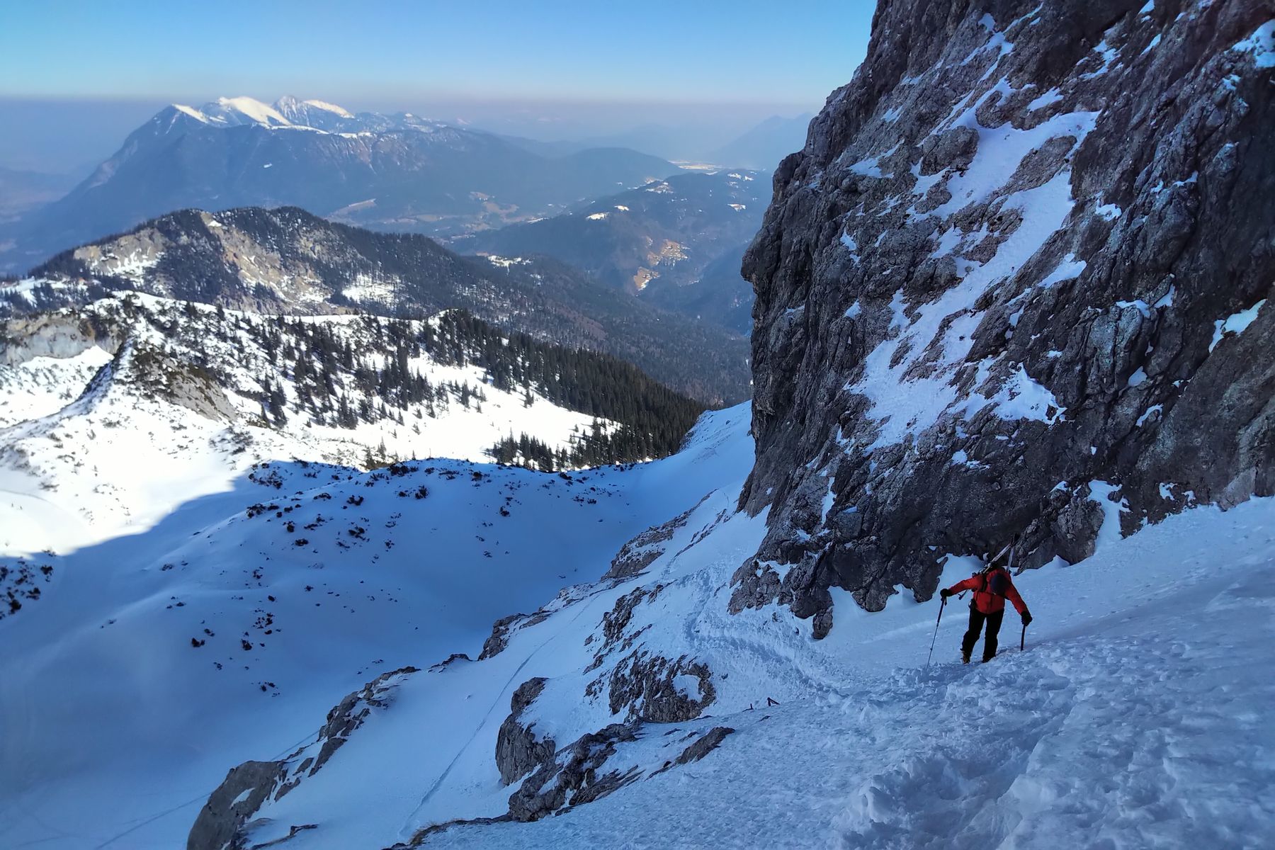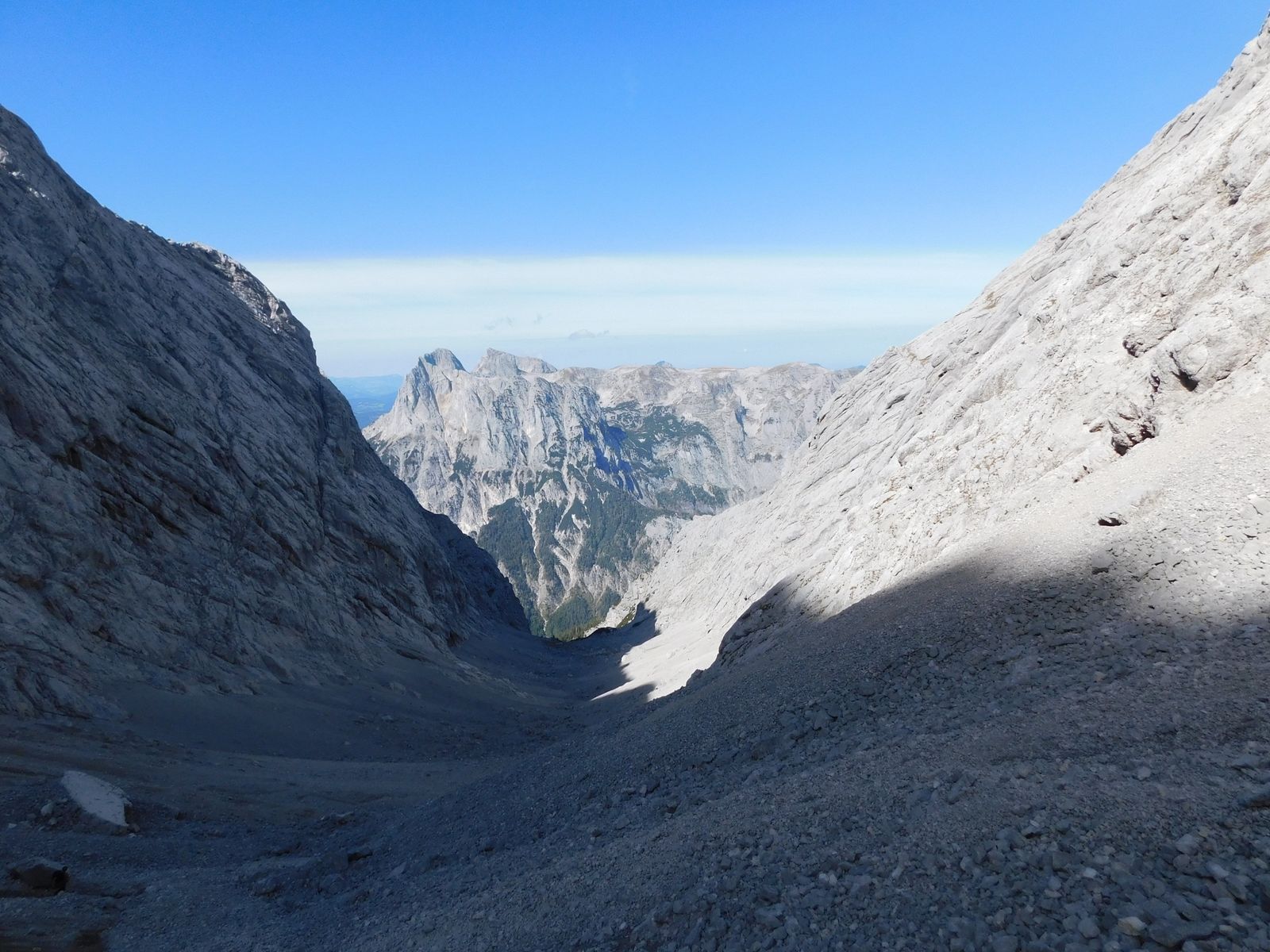 Blick zurück nach oben - diese Passage von der Scharte bis runter zur Schuttflanke fand ich klettertechnisch am knackigsten (nicht alles ist hier fest):