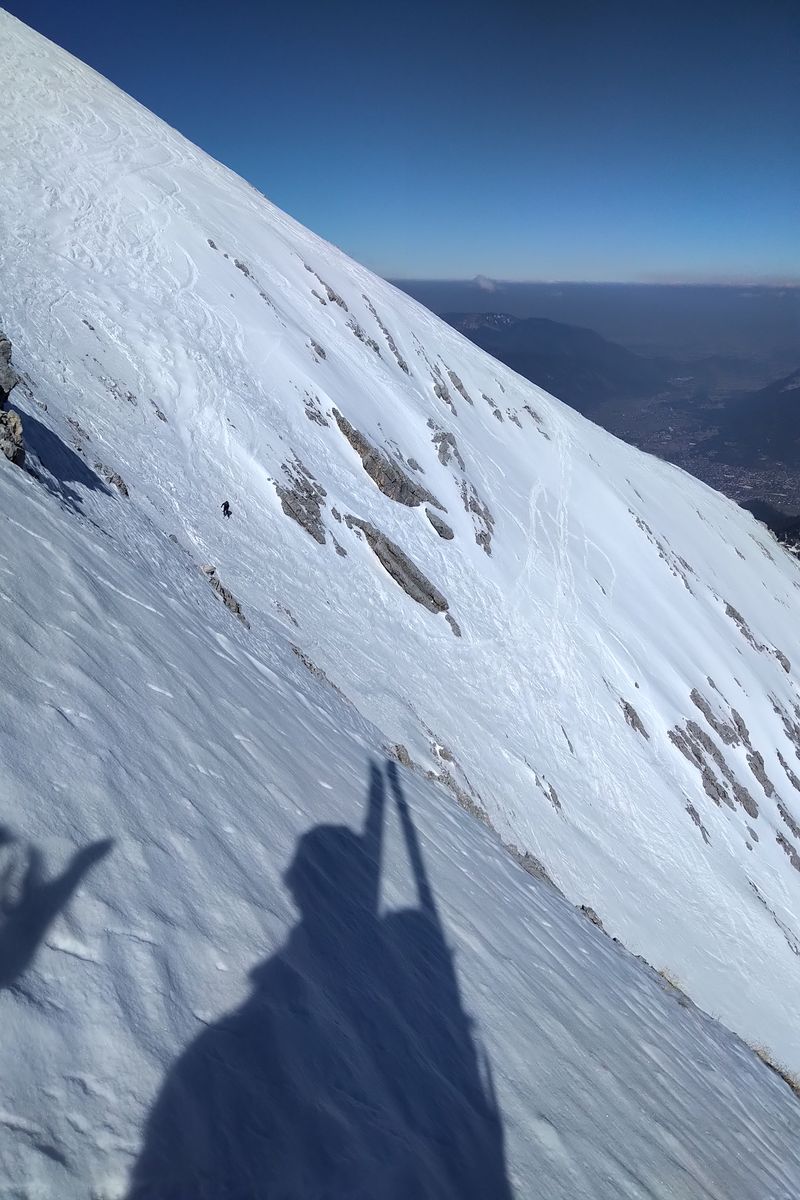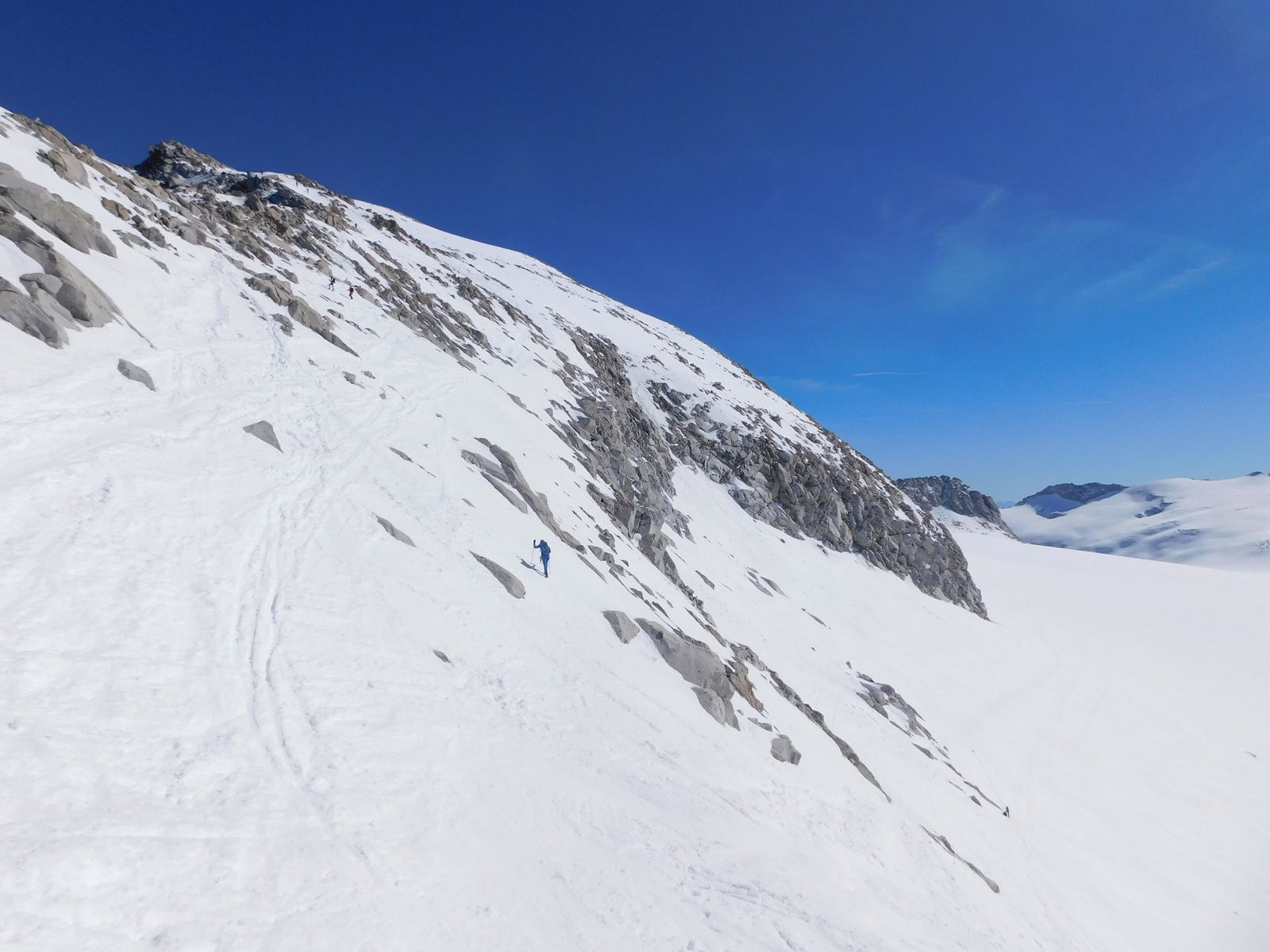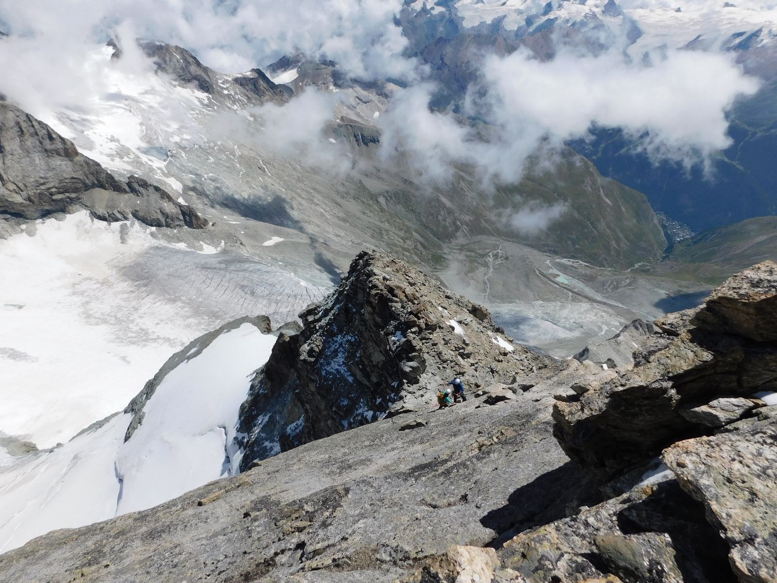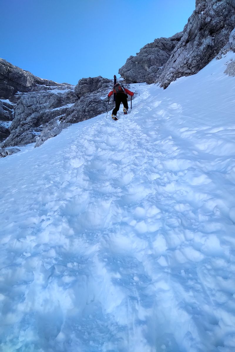 Blick zurück nach oben - diese Passage von der Scharte bis runter zur Schuttflanke fand ich klettertechnisch am knackigsten (nicht alles ist hier fest):