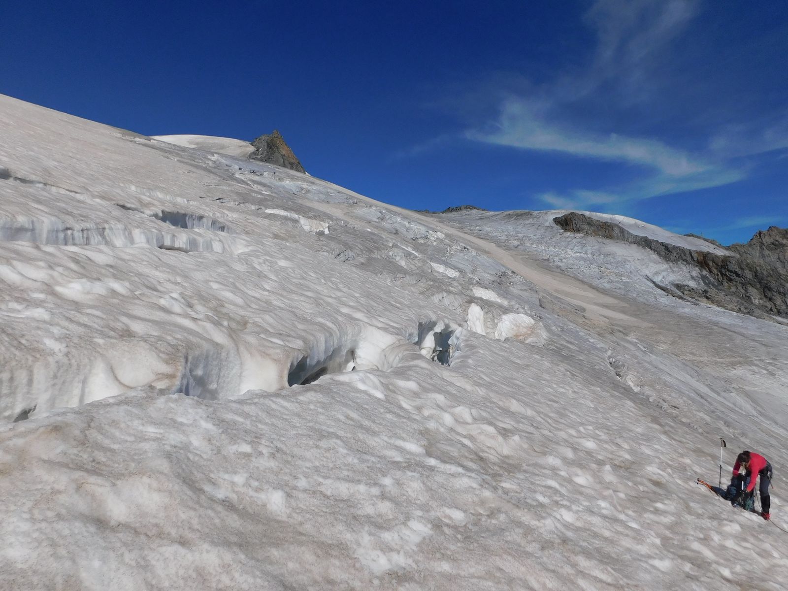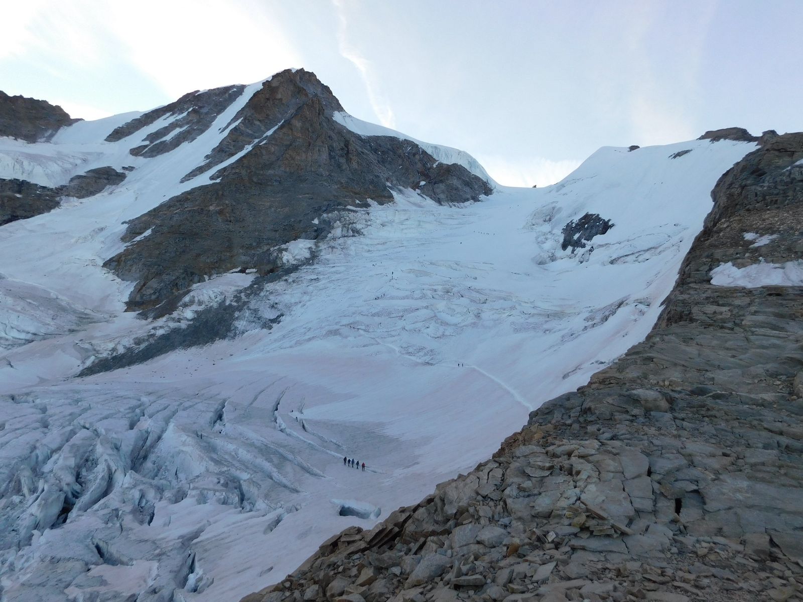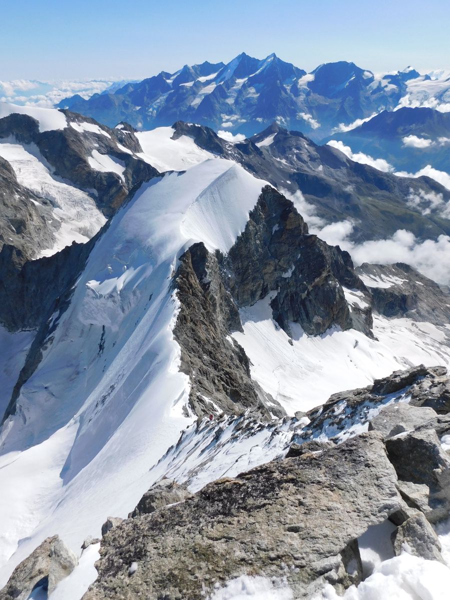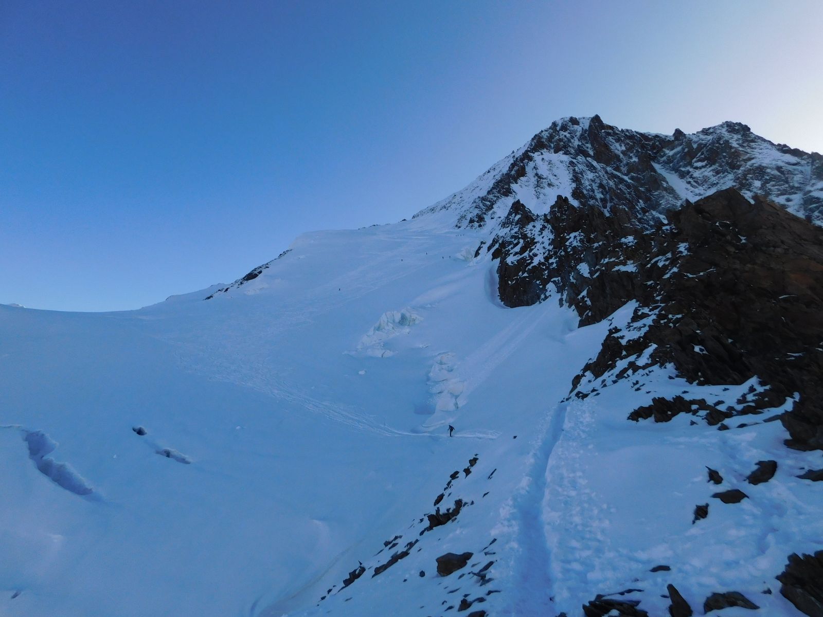 Blick zurück nach oben - diese Passage von der Scharte bis runter zur Schuttflanke fand ich klettertechnisch am knackigsten (nicht alles ist hier fest):