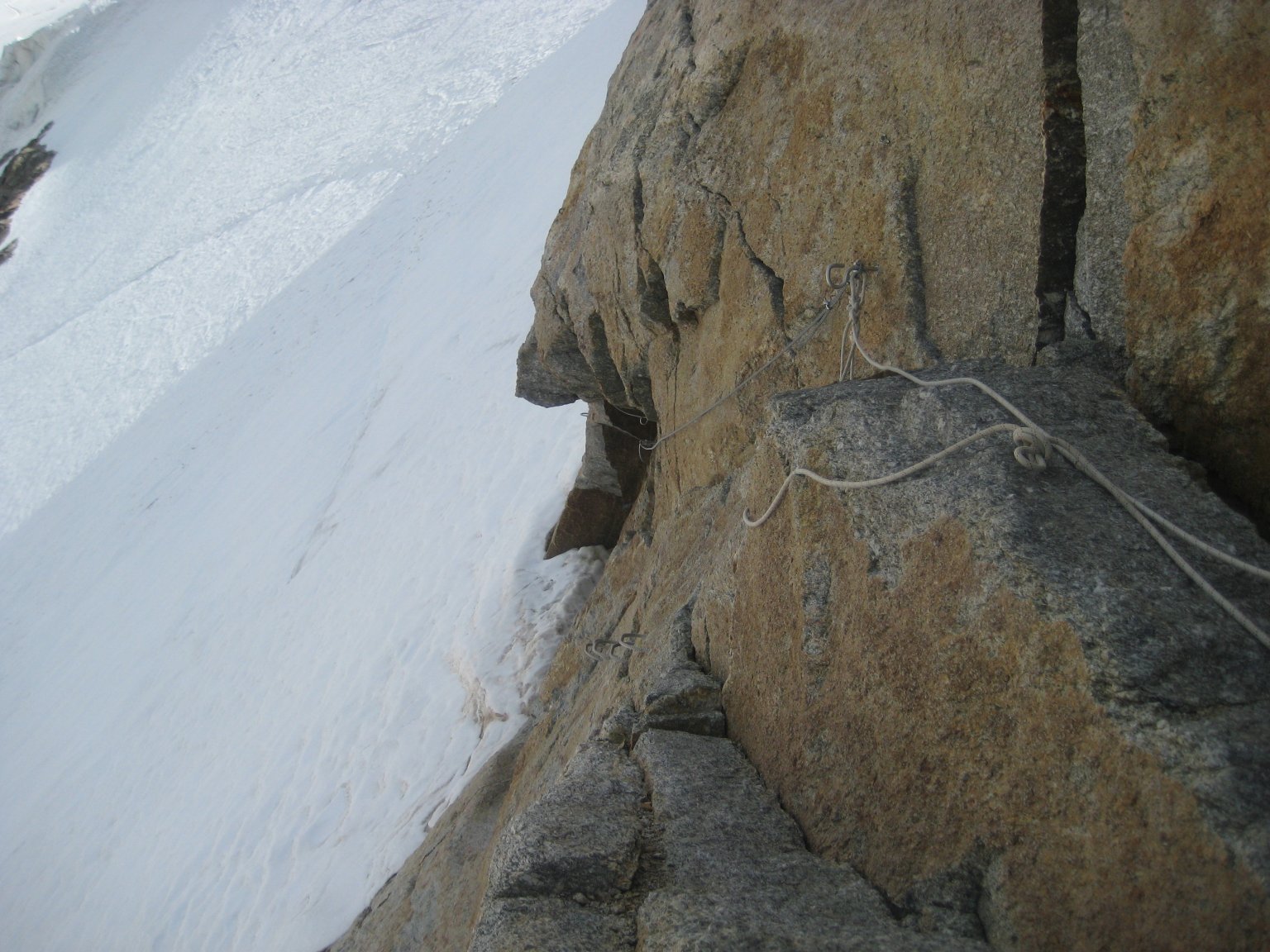 Beim "bösen Band" hat mich der Rucksack immer nach außen gedrängt, da war mir etwas unwohl. Zum Glück hatte ich eine 4m-Reepschnur dabei, so dass ich dann die kniffligen Züge ohne Rucksack gemacht hab und ihn dann später von der anderen Seite nachziehen konnte: