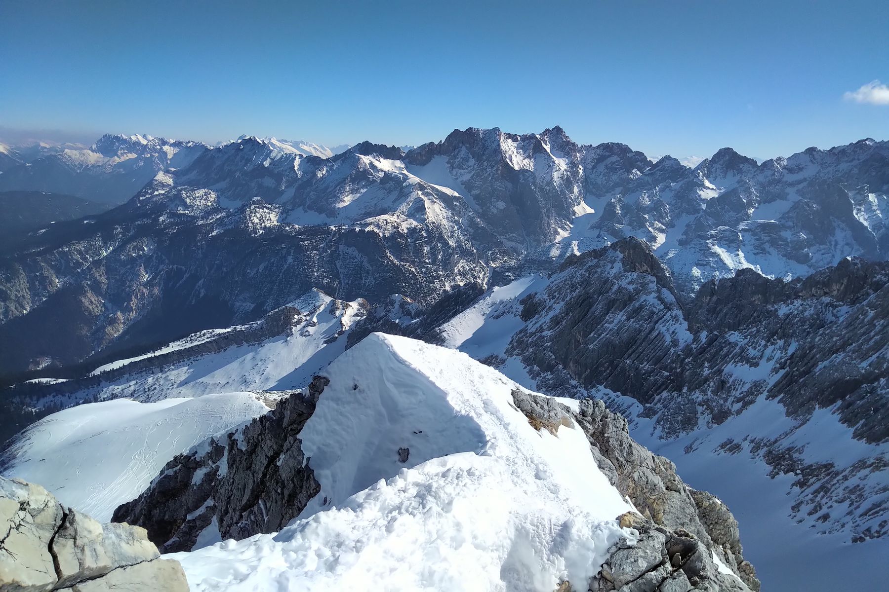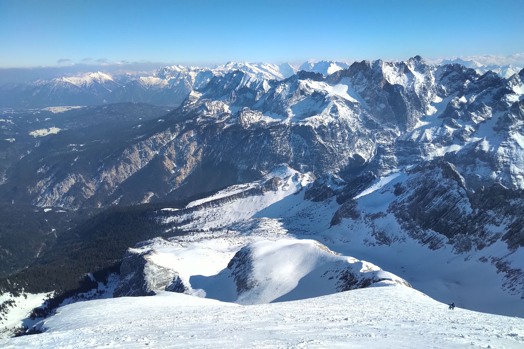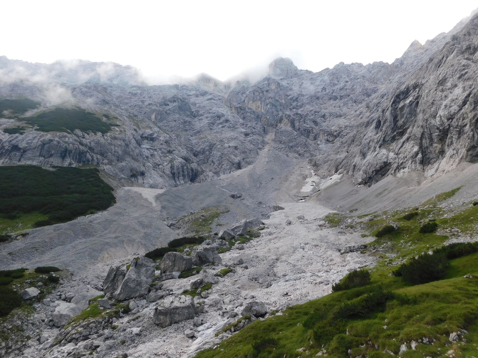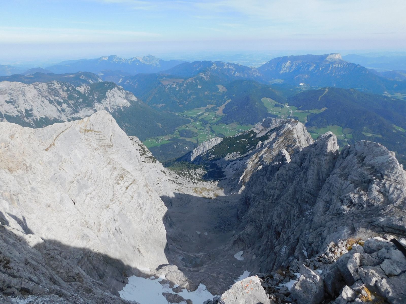 Der Rest war dann wieder relativ einfach, wenn man am Grat bleibt. Ein paar schöne Tiefblicke gibts trotzdem! Und hier bin ich wieder beim Abstieg ins Leutaschtal (über Arnspitzhütte und Hohen Sattel):