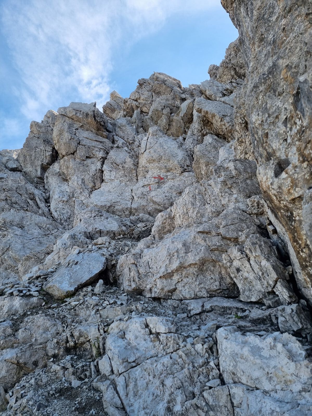 - Ein Problem dagegen waren einige Abschnitte zwischen Wasser- und Rinnerspitz. Hier lagen die Markierungen/Spuren teils komplett unter noch knietiefem Schnee, was in der oft steilen Flanke nicht immer lustig war. Hier war konzentriertes Suchen nach dem Weg und wühlen im Schnee angesagt.