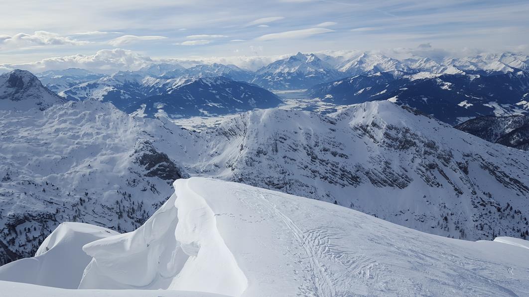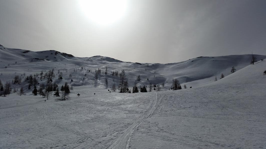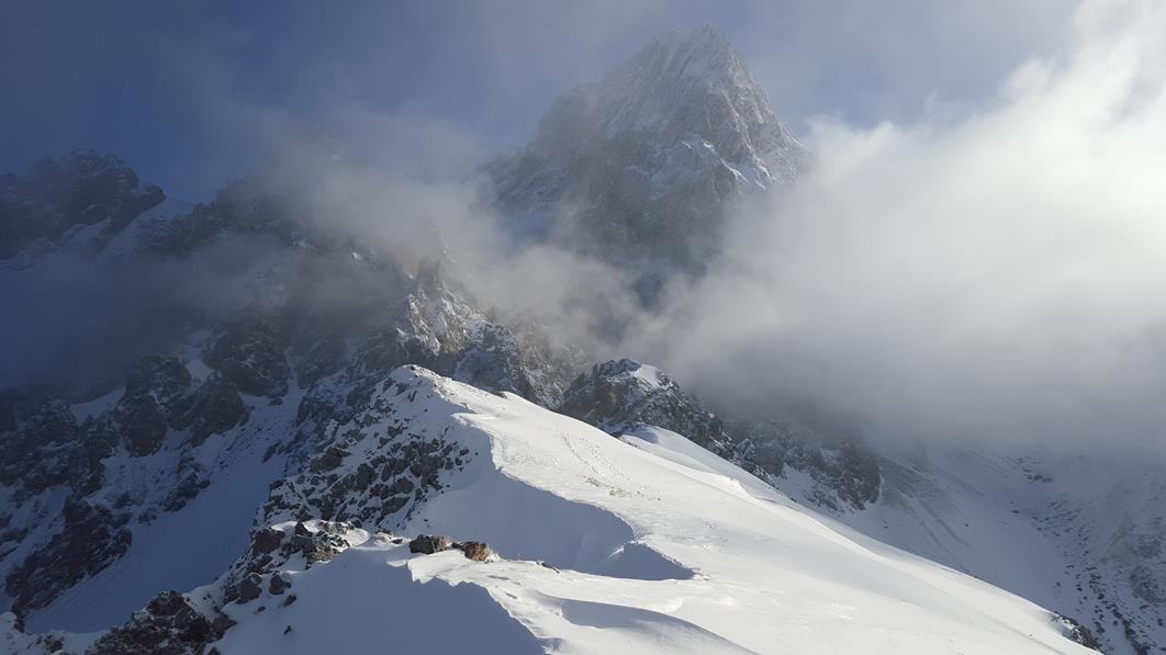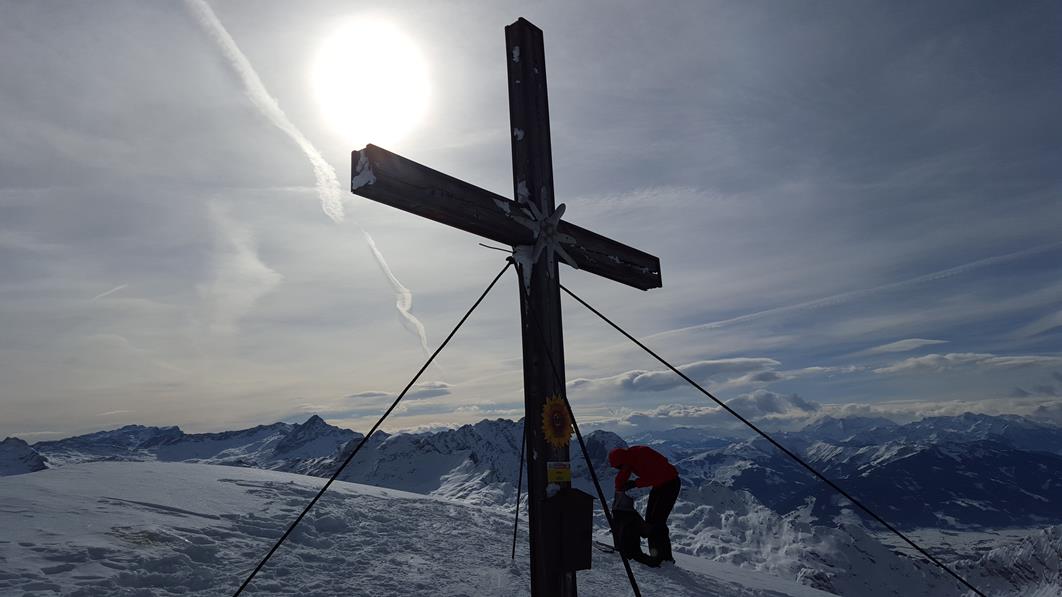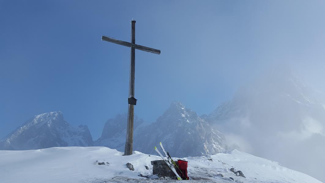 Tourenverhältnisse: Spalten gut eingeschneit. Im Aufstieg rutschig zu gehen. MIt Harscheisen aber problemlos machbar. Gipfelhang der auf den vorderen Allalingrat führt mit Steigeisen gut machbar. Teilweise Blankeisstellen die man aber umgehen kann. Am GIpfel starker Wind. In der Abfahrt Windgepresster Pulver und Harsch der pickelhart zu fahren war. Ingesamt wenig los war alleine am Gipfel-
