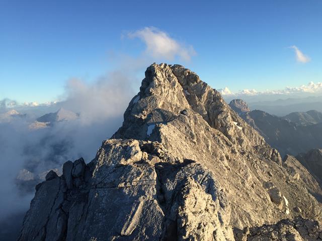 Gipfel und Höhe: Watzmann Südspitze 2713m, Watzmann Mittelspitze 2714m