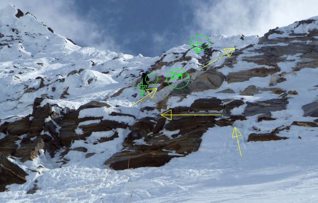 Von hier einer schneebedeckten Rampe schräg aufwärts folgen.