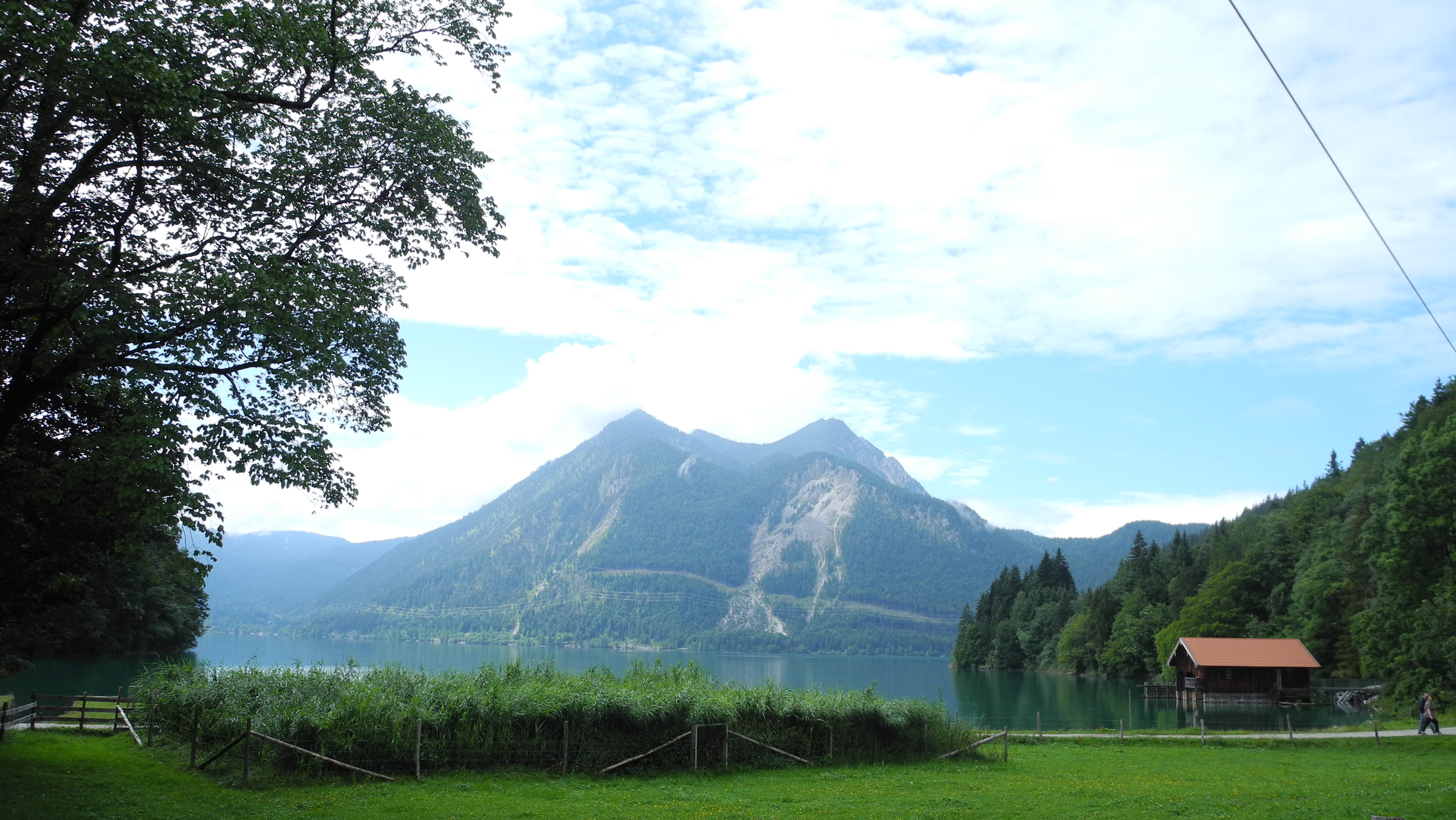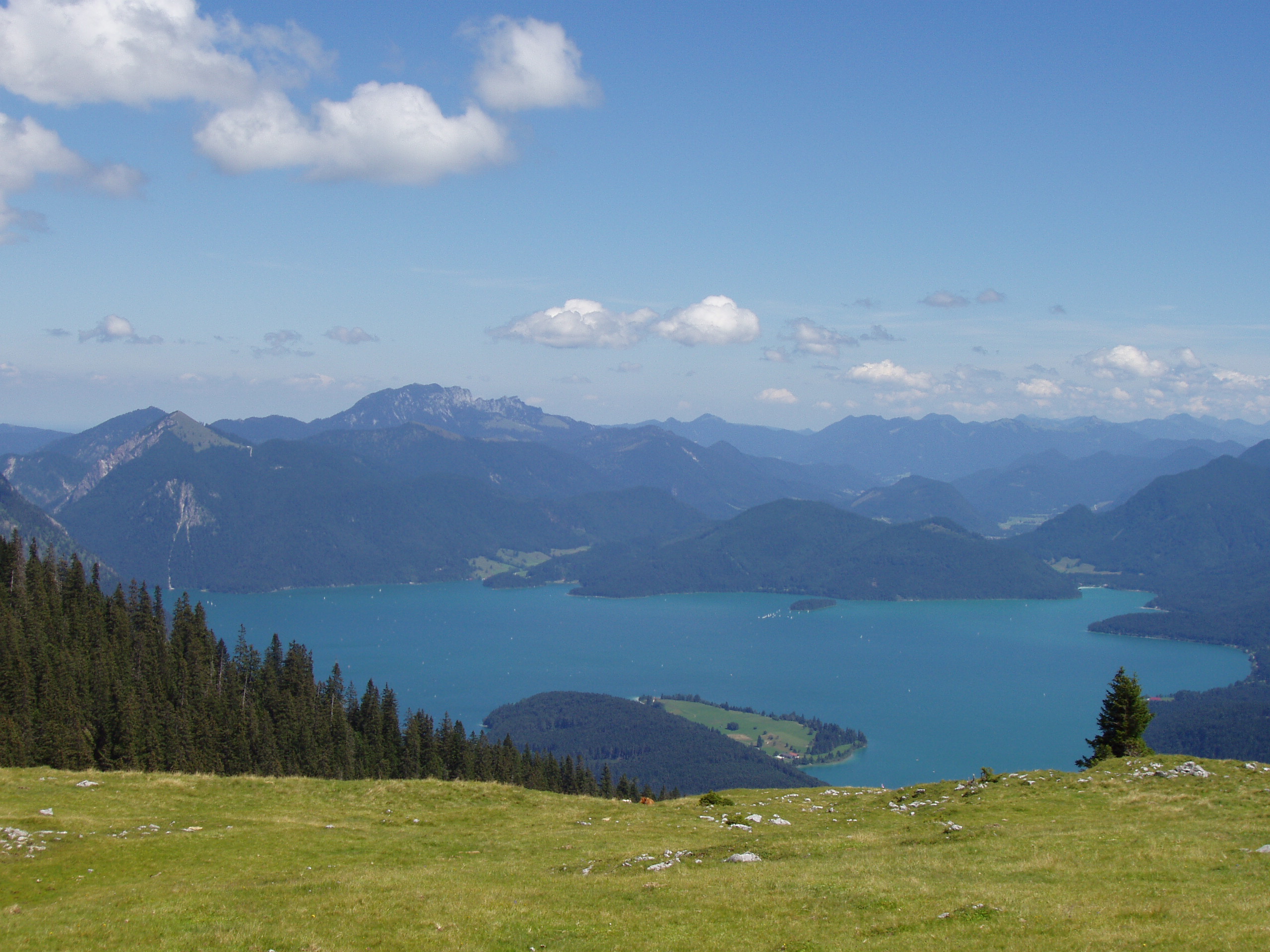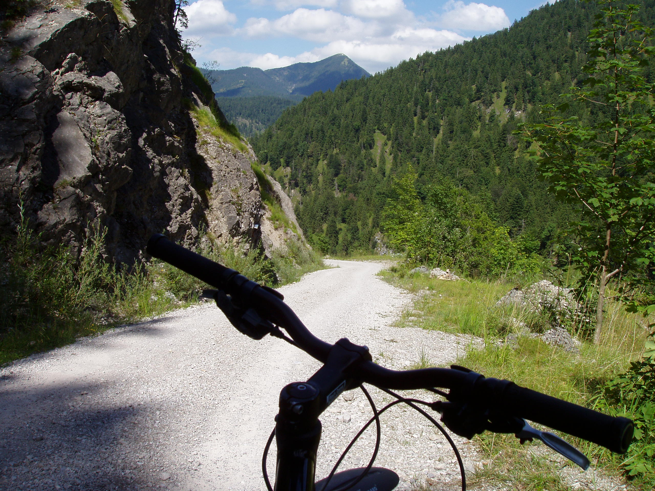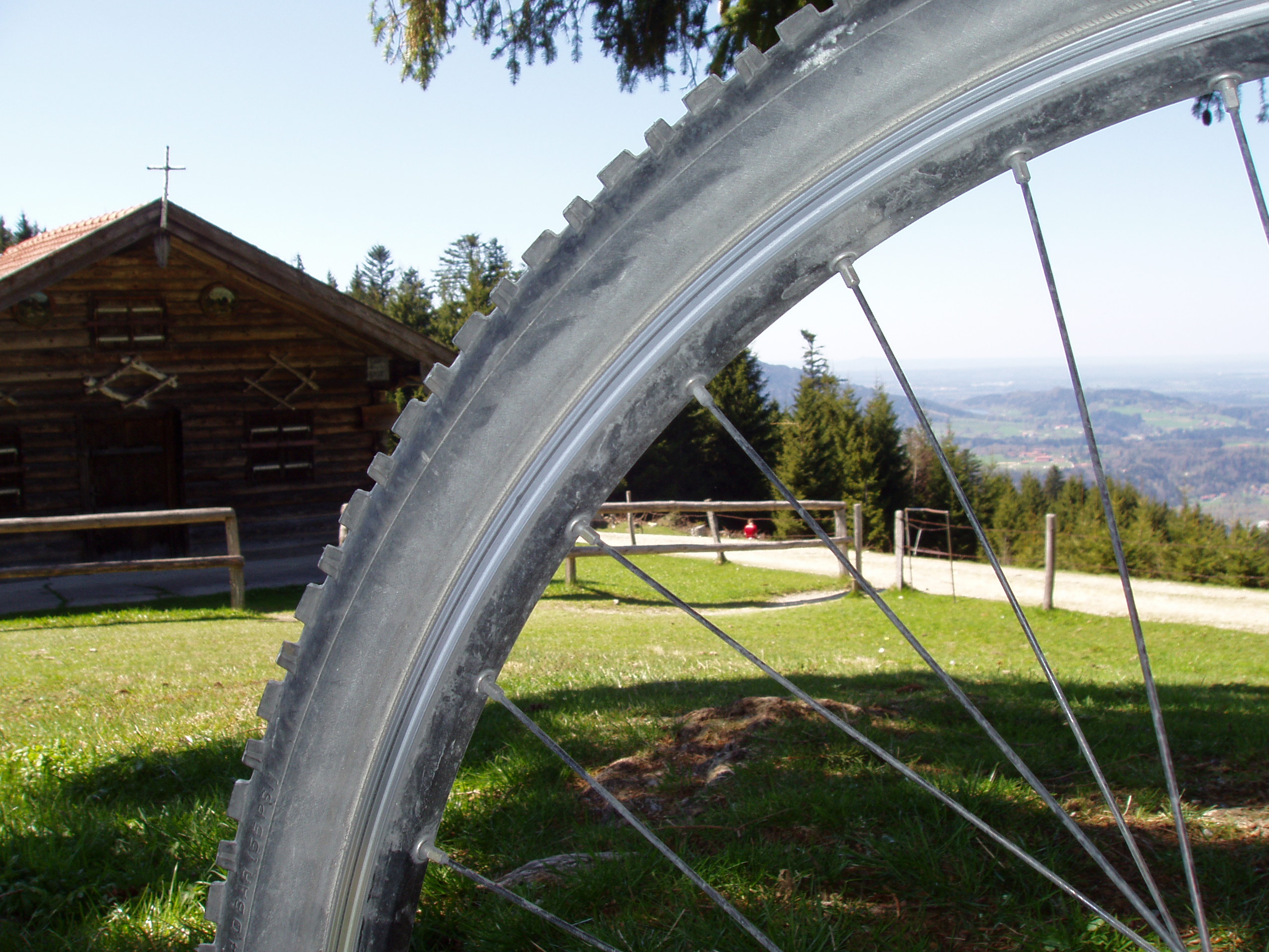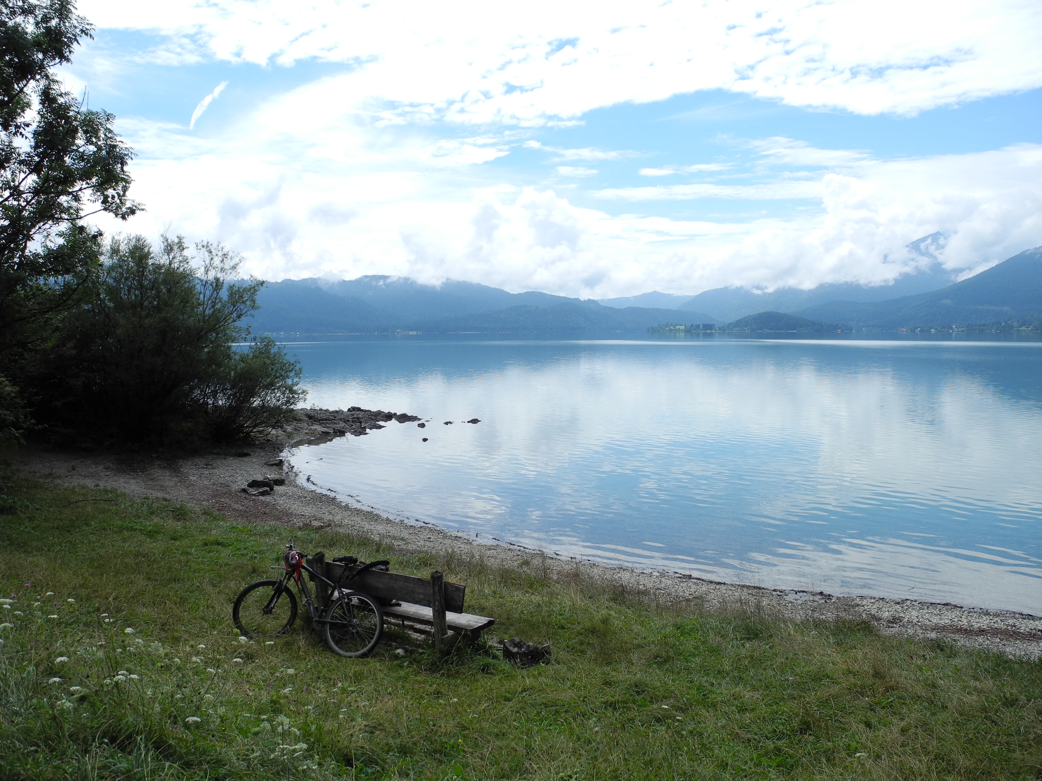 Tour: Ich bin hinter der Firma Dorst auf der Forststraße immer Richtung Hirschhörndlkopf/Jochberg in wechselnder Steigung bergan gefahren. Dann über die Riesen-Schneise zur Kotalm (1133 m) hinab gerollt. Weiter abwärts Richtung Jachenau und über den schönsten Flecken der Jachenau, den herrlich freiliegenden Weiler Berg, nach Sachenbach/Walchensee. Am türkisblauen See gings entlang, die paar Asphaltkehren hinauf zum Kesselbergsattel. Von dort bin ich die alte Kesselbergstraße (einige Schiebepassagen, sonst sehr schön) bis Kochel hinabgefahren und zurück zum Parkplatz.