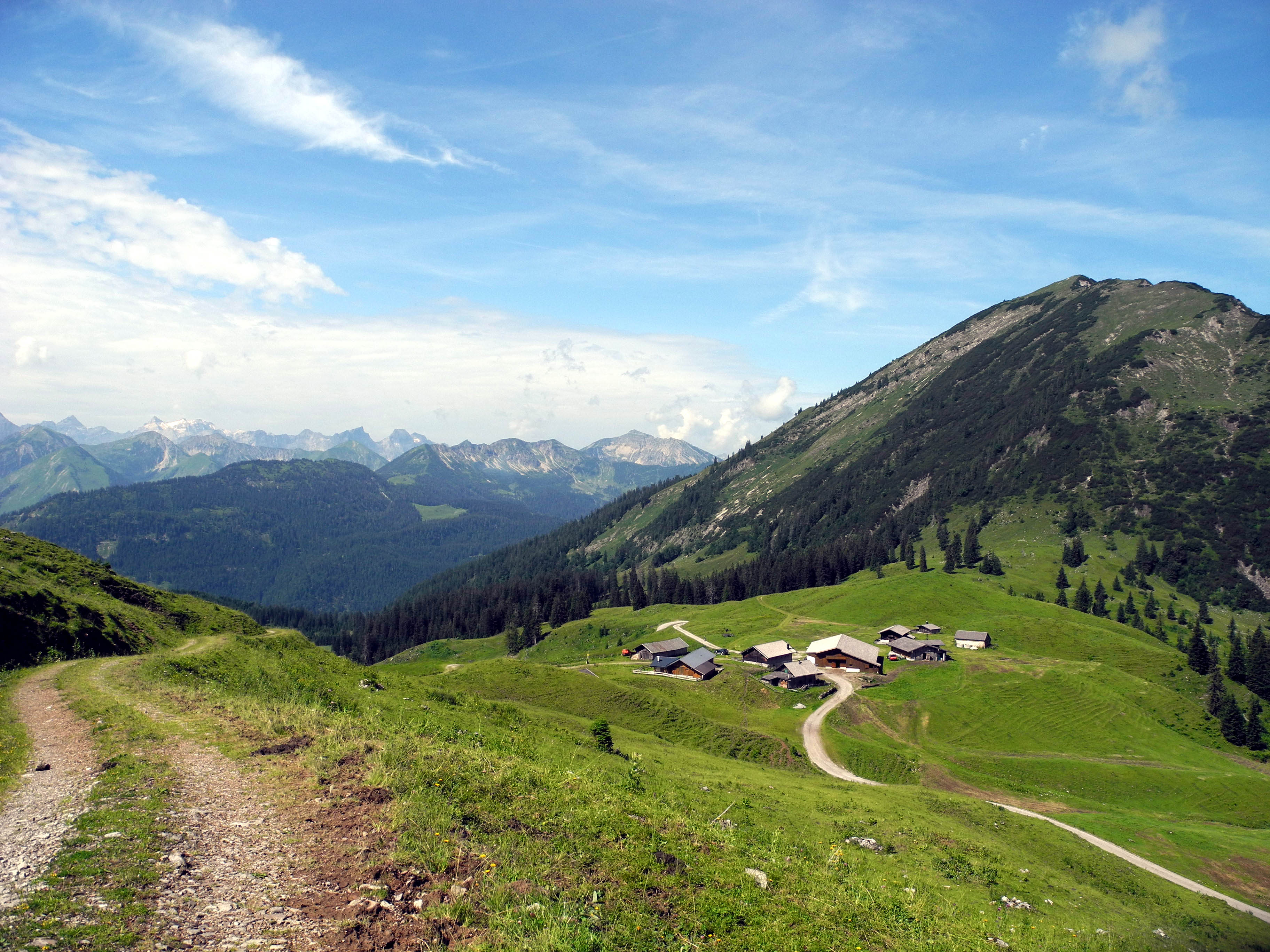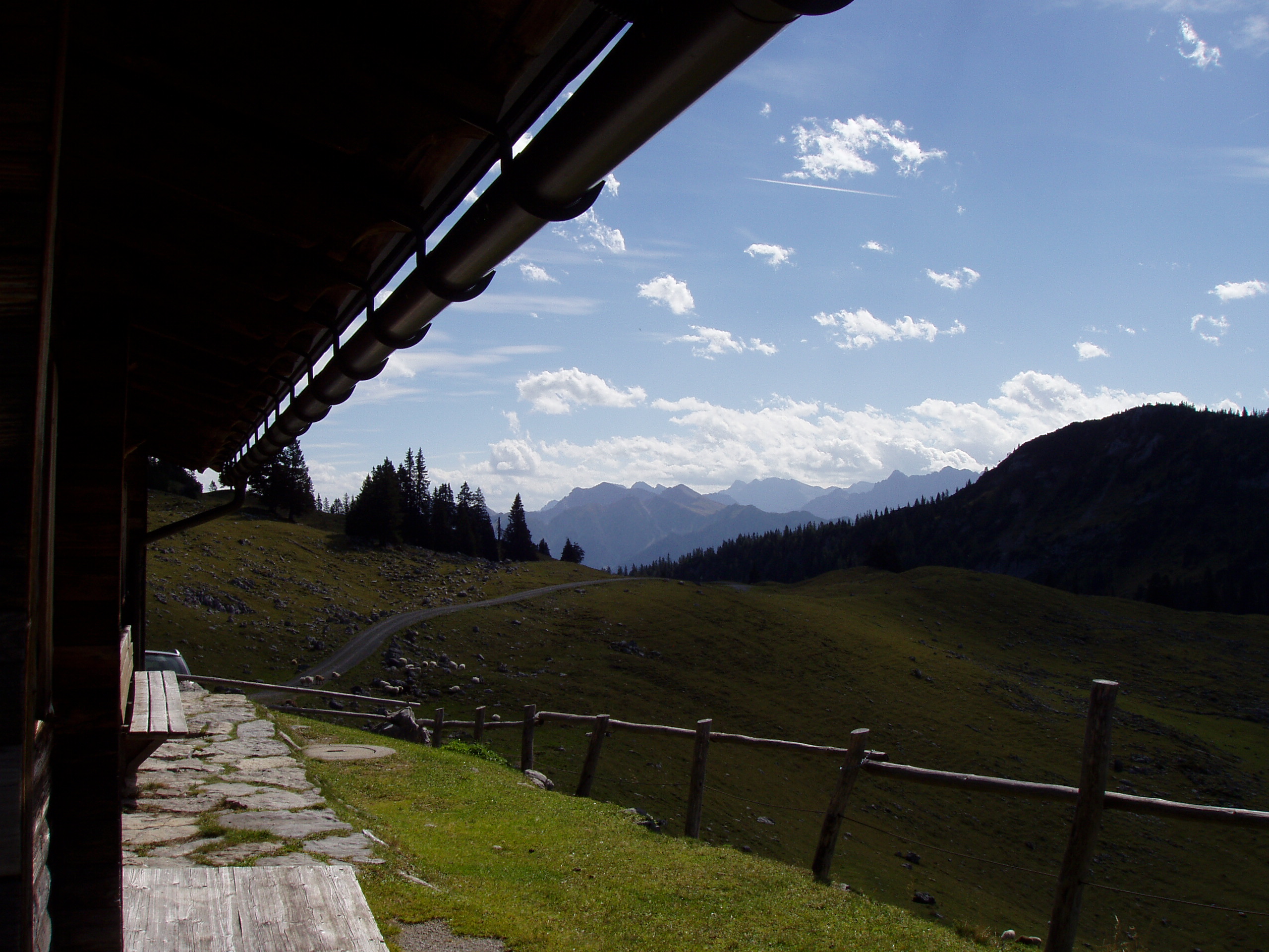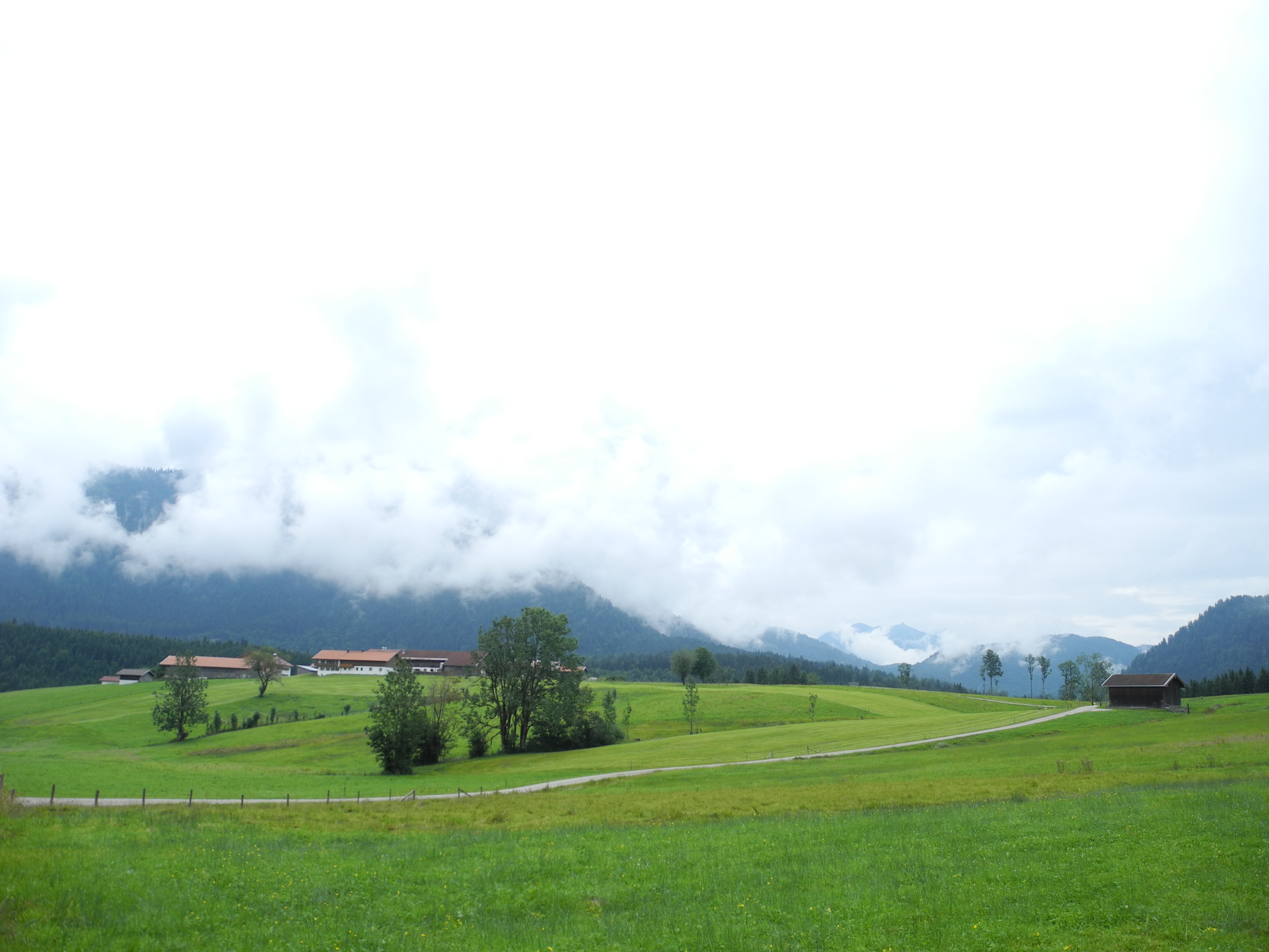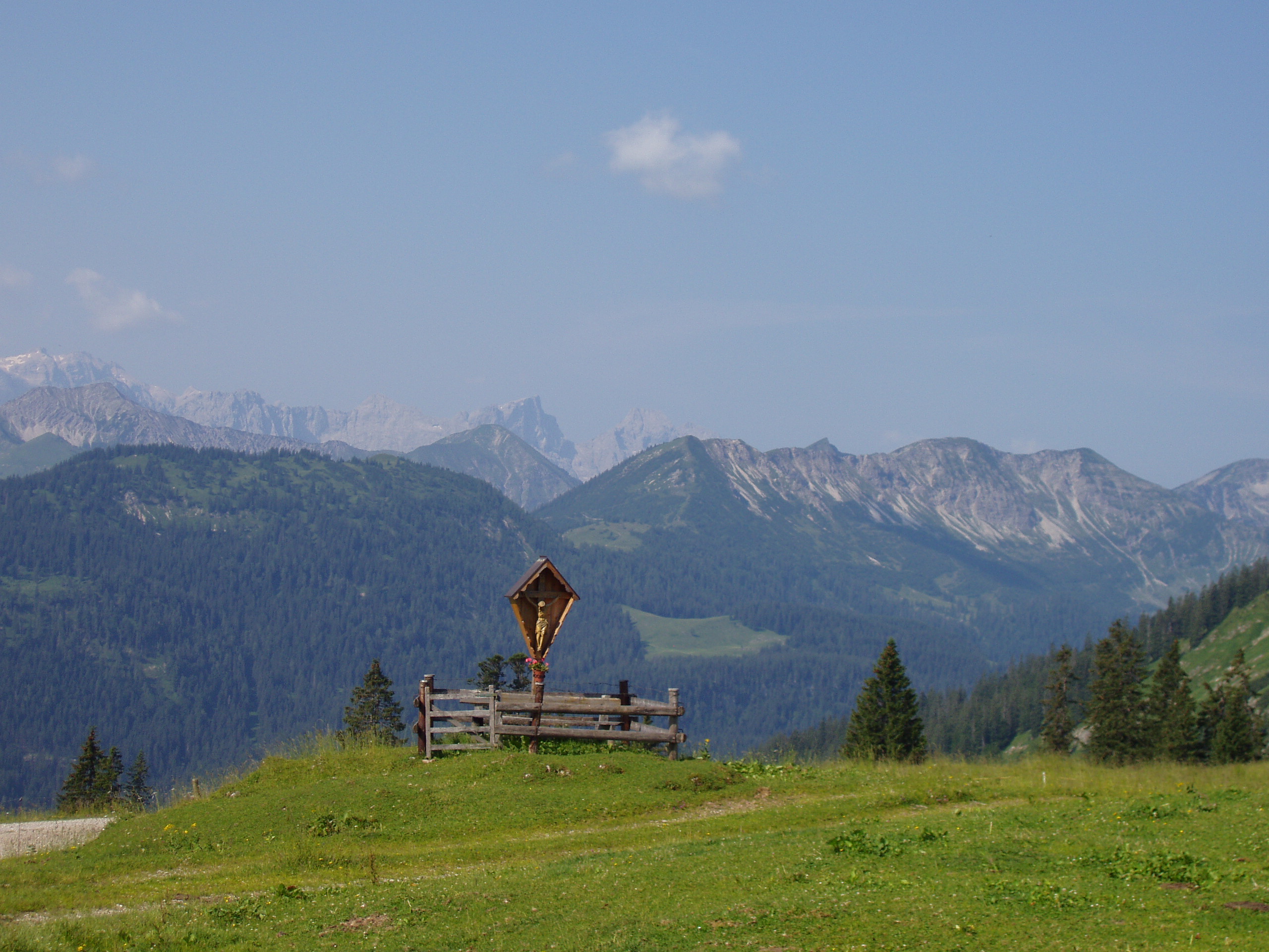 mit dem MTB über die schattige Forststraße bis zur Orterer Alm (1085 m) aufgefahren. Die Hütte ist im Sommer am Wochenende und an Feiertagen bewirtschaftet. Dann zu Fuß unter kühlenden Bäumen bergauf bis zum Wiesensattel mit Kreuz. Da der Rabenkopf wegen Überfüllung geschlossen war (Scherz) folgte ich heute dem Pfad nach links, Richtung Benediktenwand. Der kaum begangene Höhenweg führt sehr aussichtsreich und beinahe flach zur Achala Alm (Abzweig nicht übersehen). Oberhalb der Hütte ist auf einem Grashügel ein Kreuz und eine Aussichtsbank :) .....