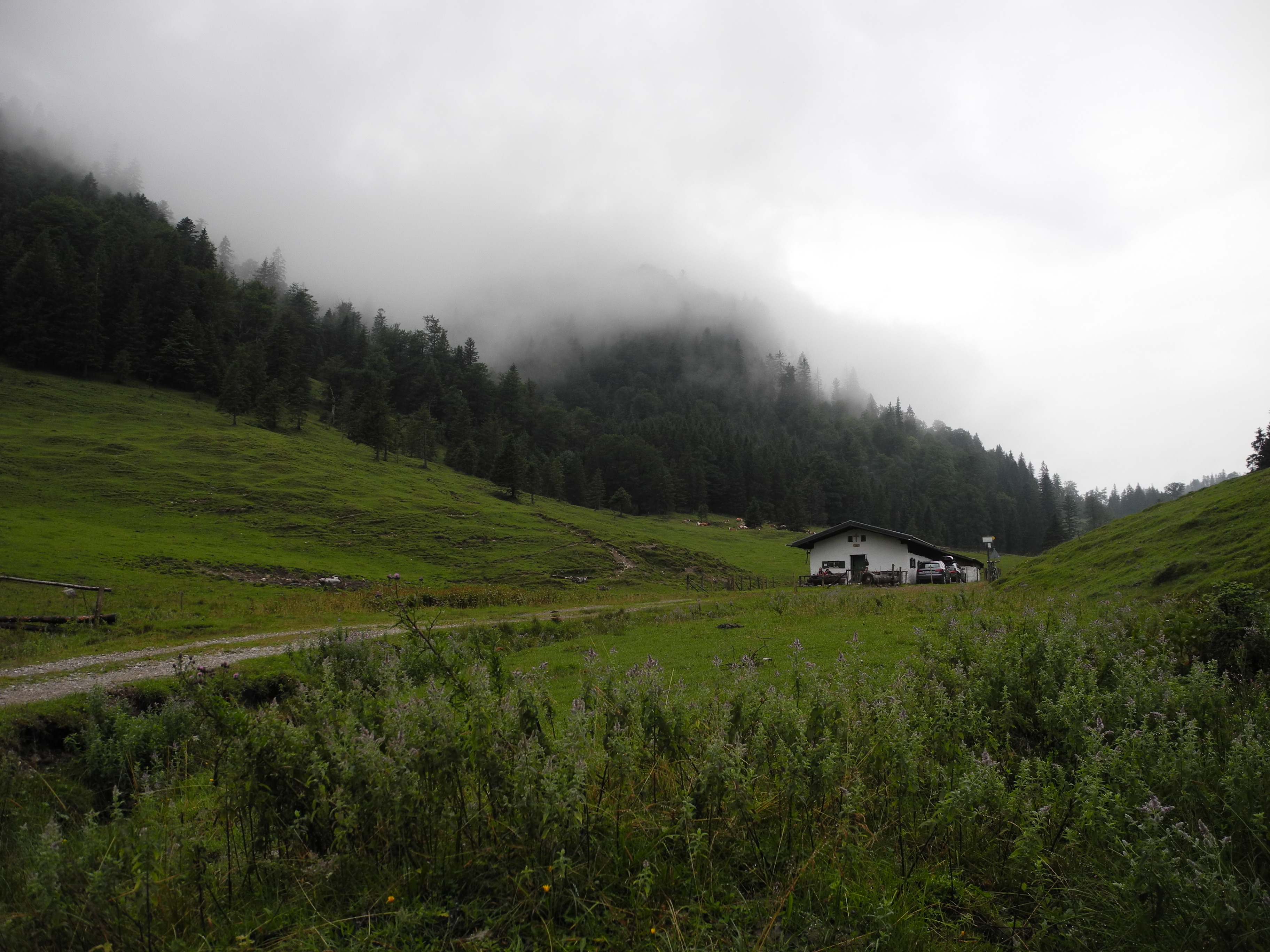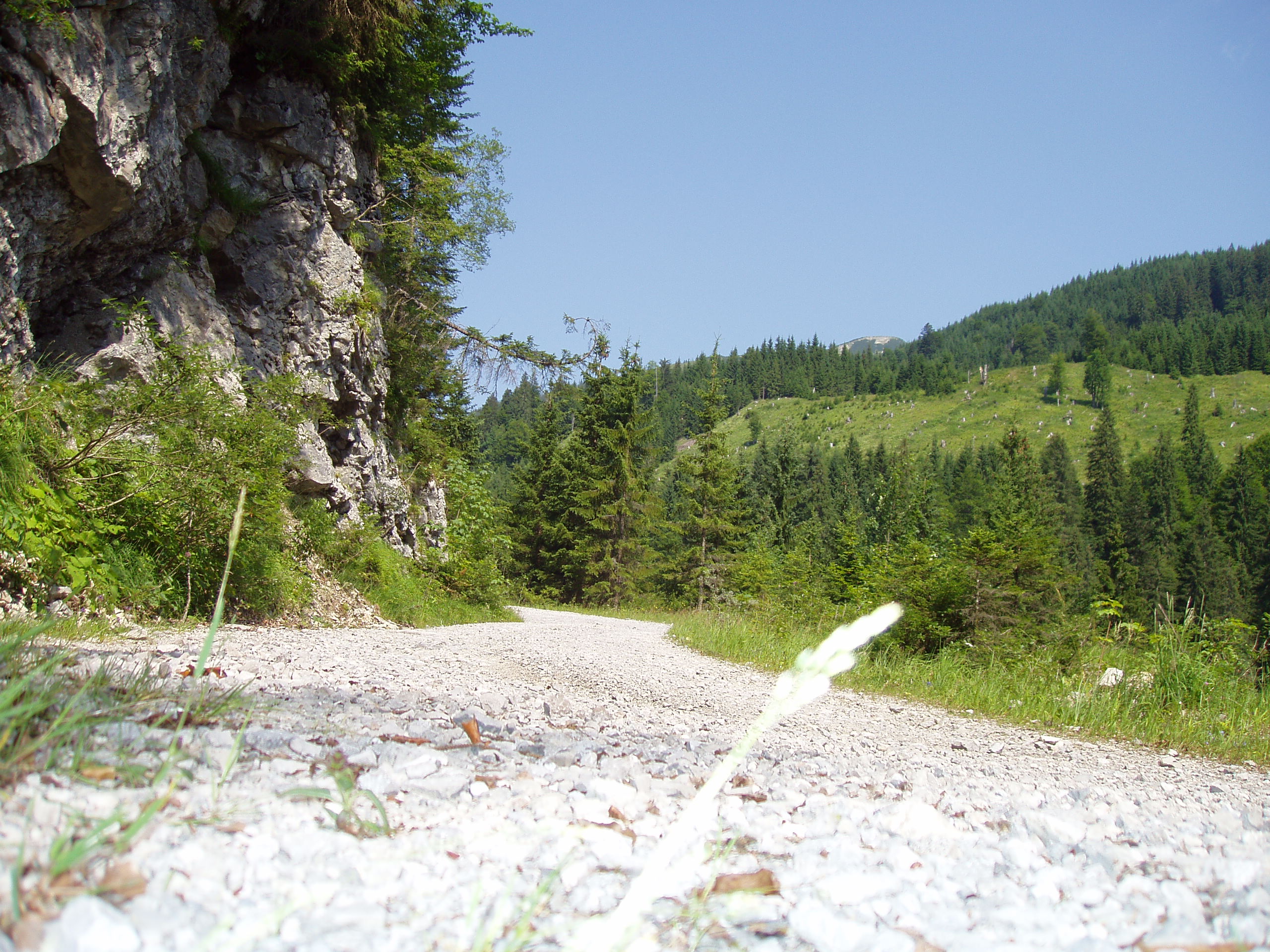 Tour: Die Forststraße zieht gnadelos empor, es gibt aber auch kleine Verschnaufpassagen. Beim Start war es ziemlich warm und sonnig, da war die etwas schattige Auffahrt ein guter Griff. Auf der Hochfläche bei der Kuhalm (Rechtlerhütte, 1630 m) ließ ich meinen treuen Drahtesel zurück. Die Hütte war schon zu, obwohl noch unzählige Schafe auf den Weiden waren.