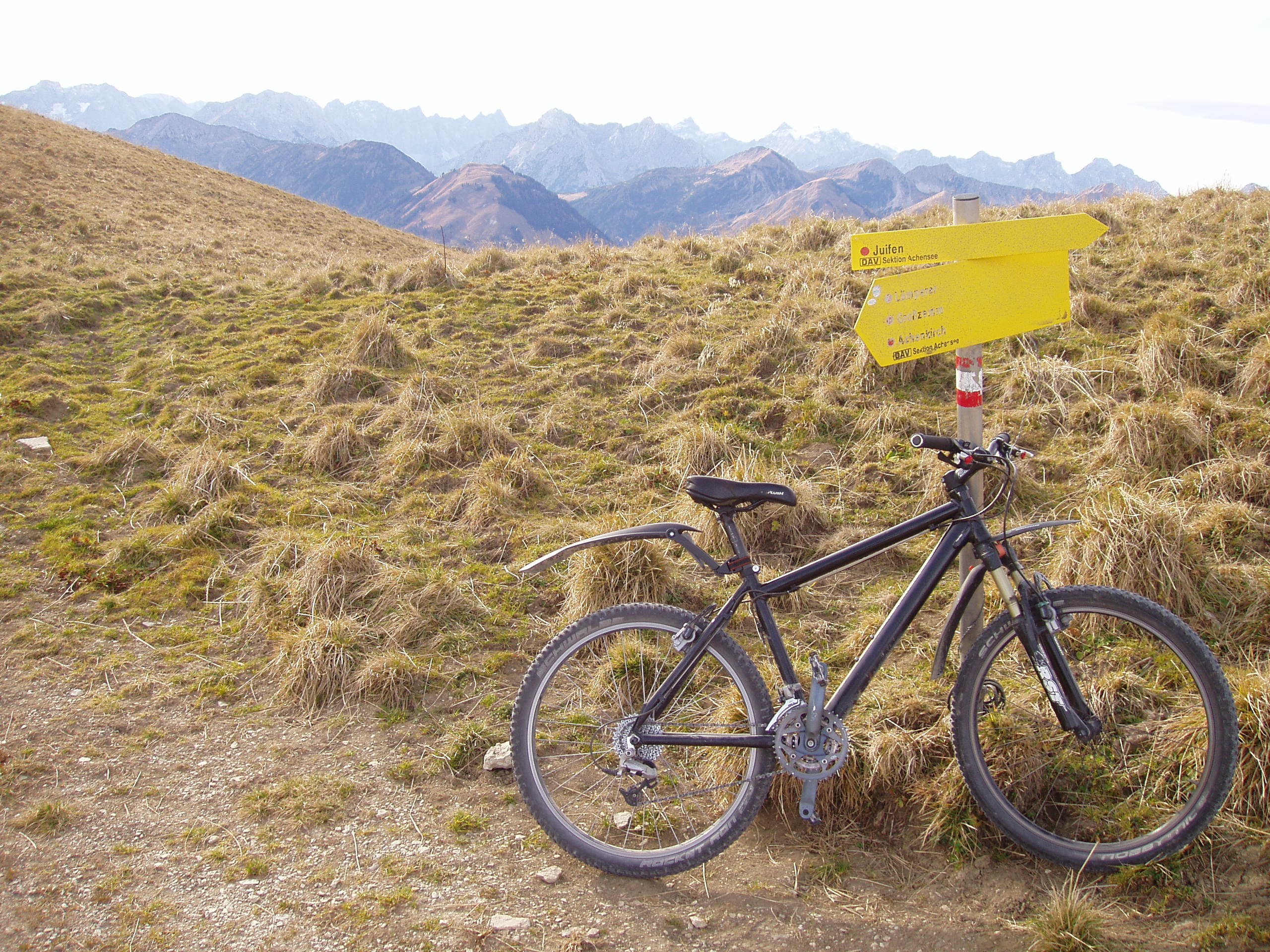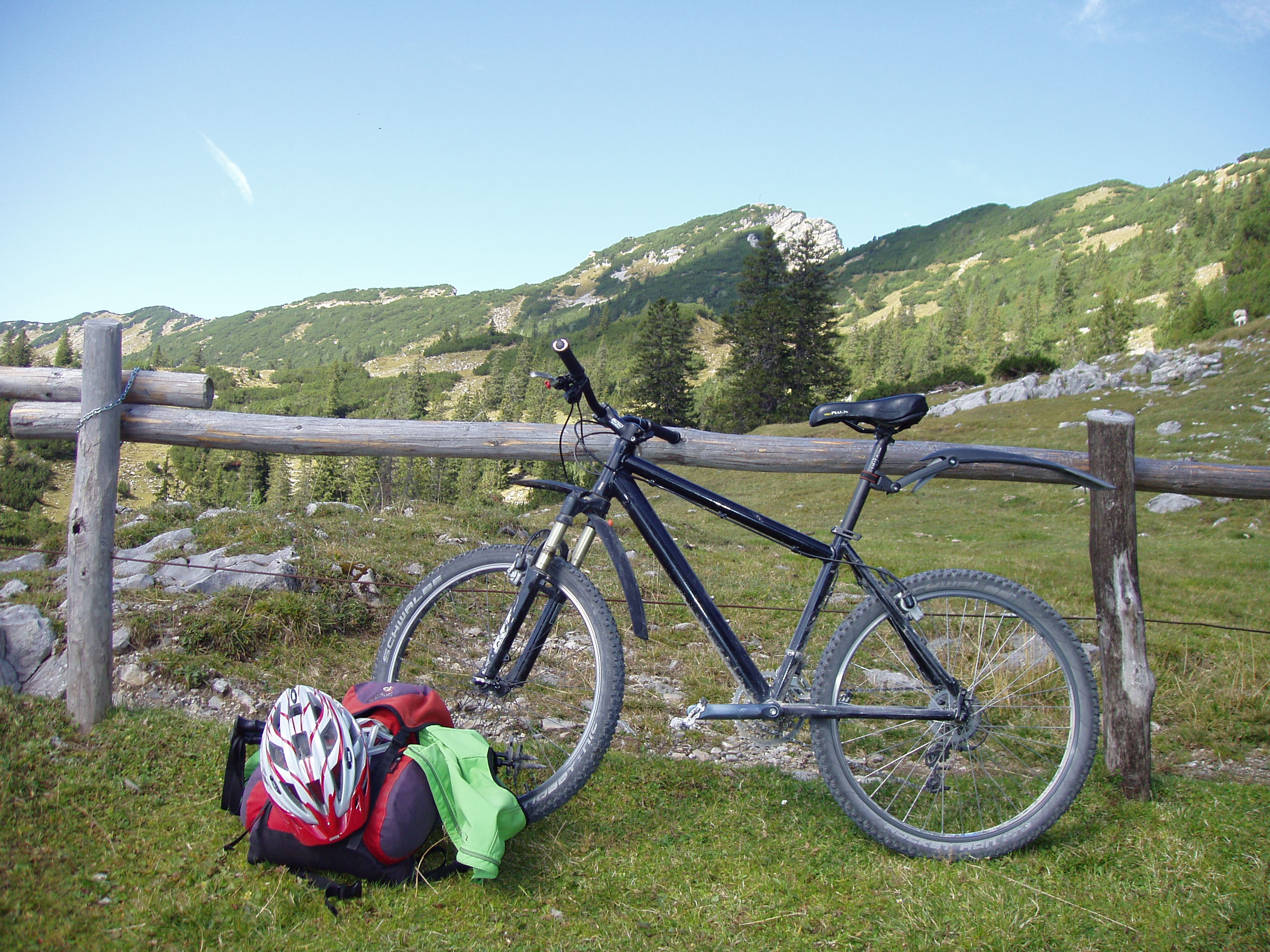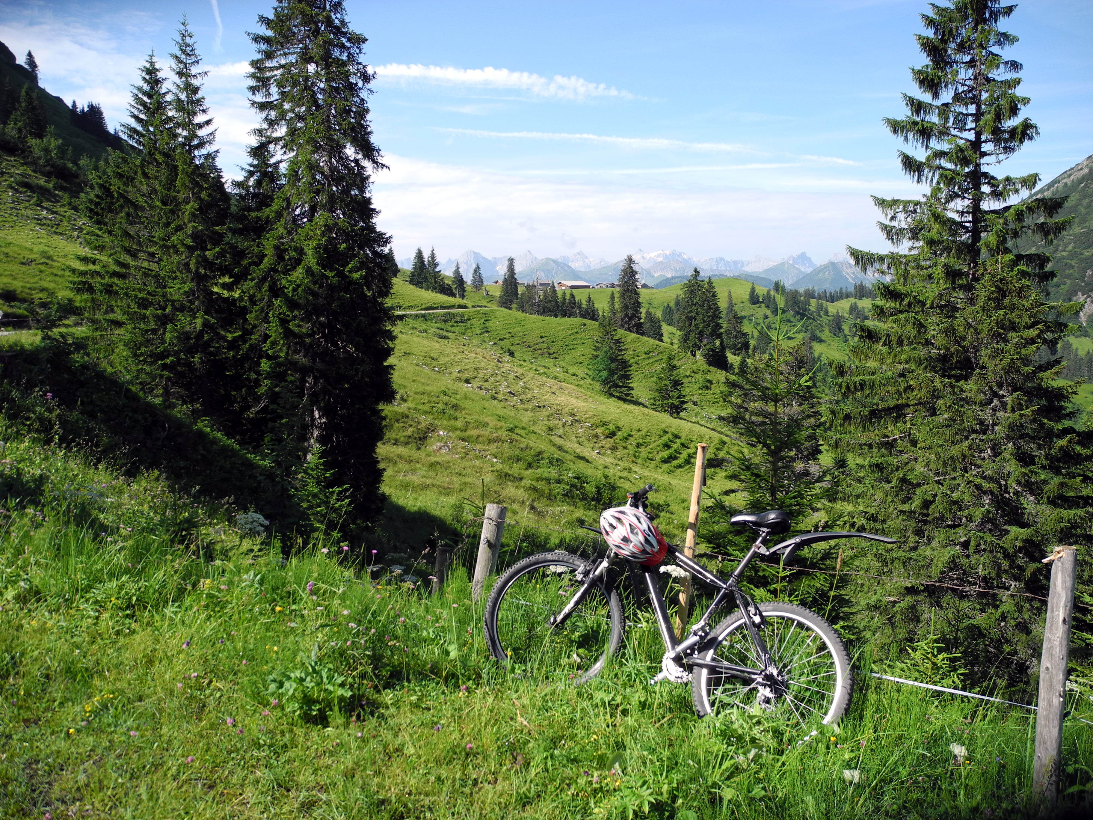 Da die Kühe schon weg waren, hab ich mein MTB auf der großen Wiese deponiert.