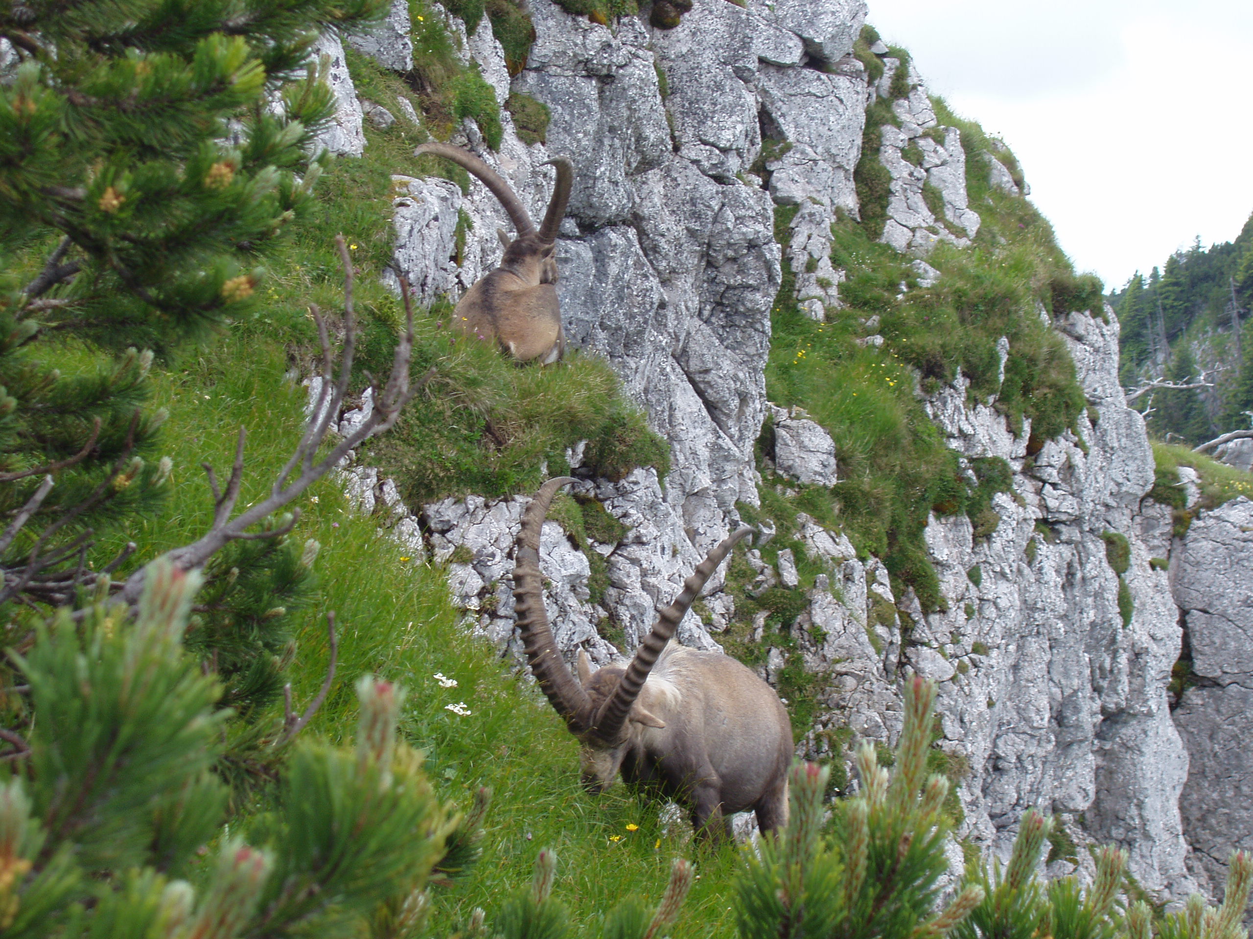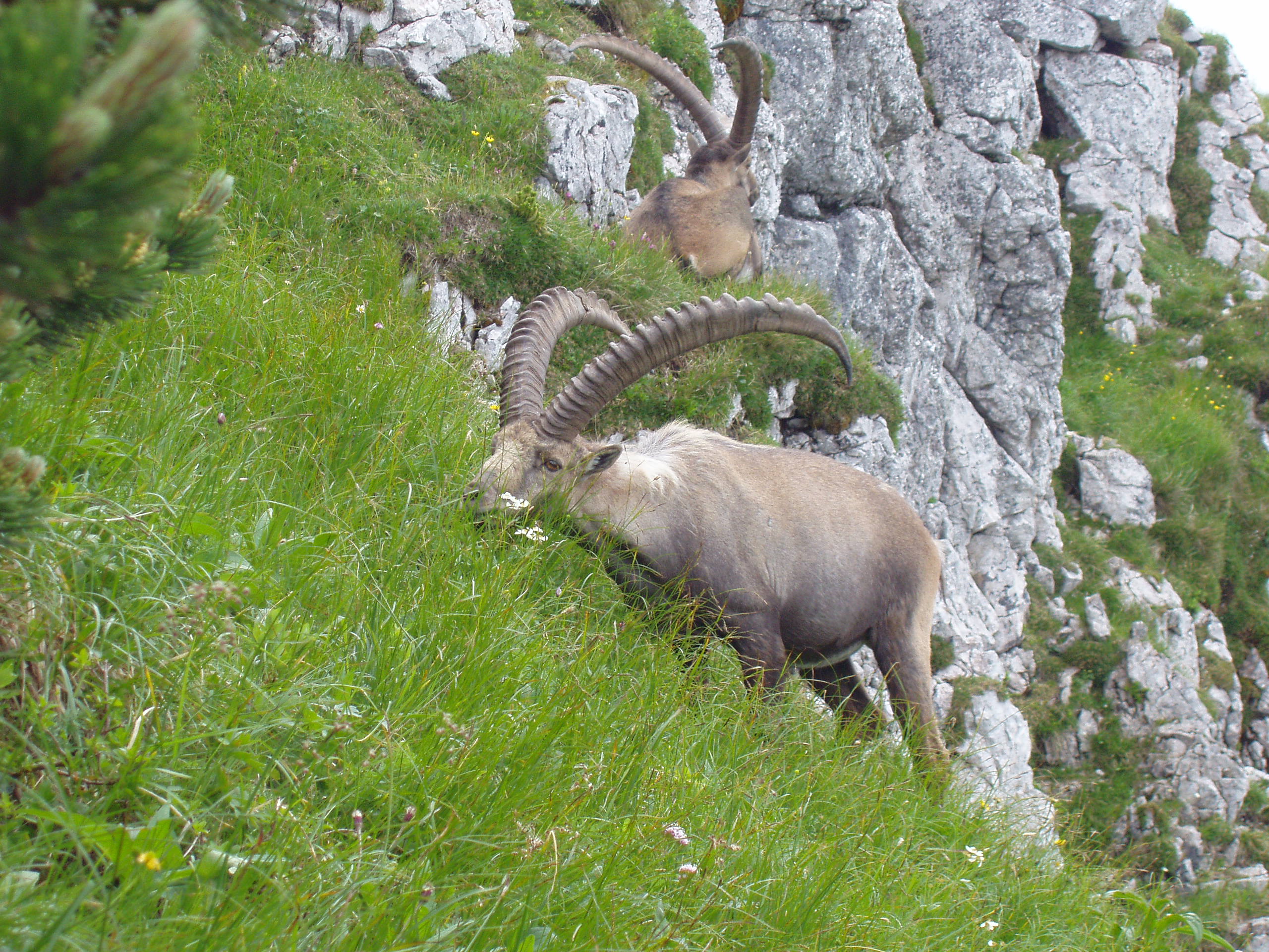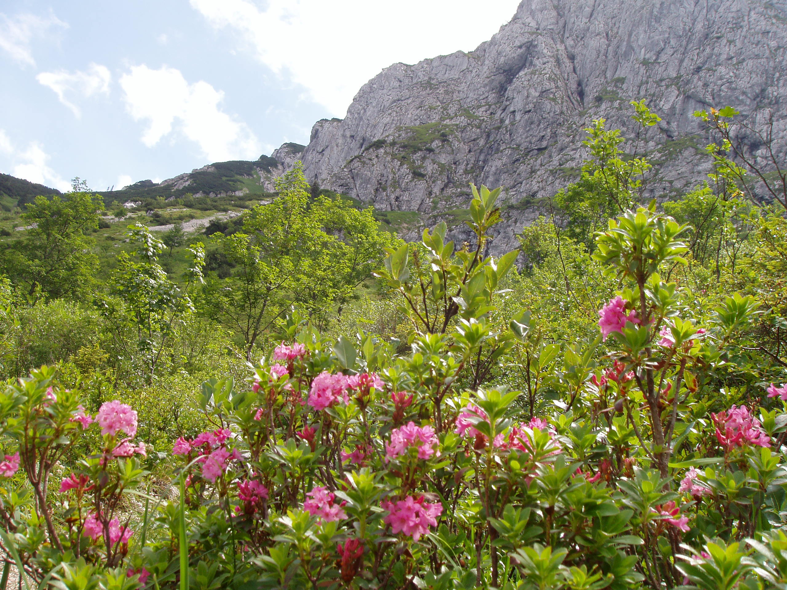 Die Alpenrosenblüte ist in vollem Gange. Außerdem waren einige Steinböcke unterwegs, die 2m neben dem Wanderweg dösten und die Wanderer betrachteten.