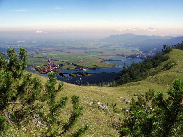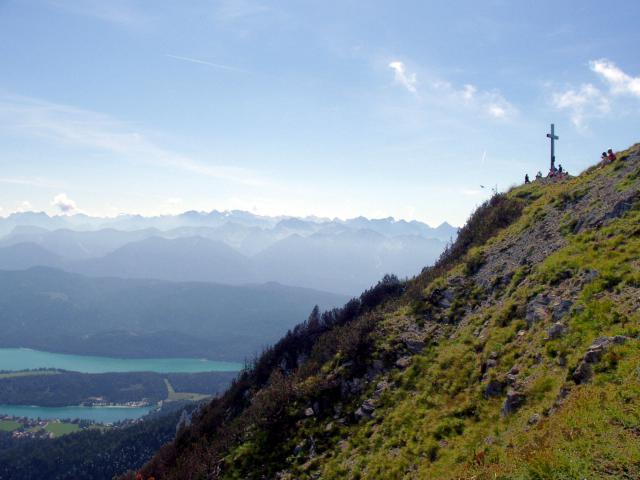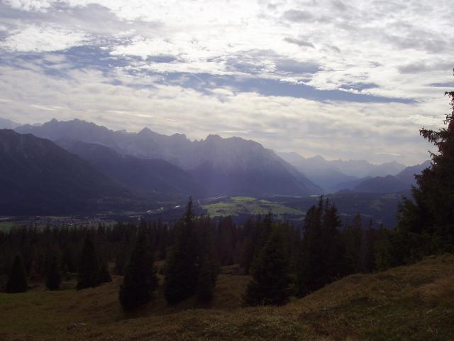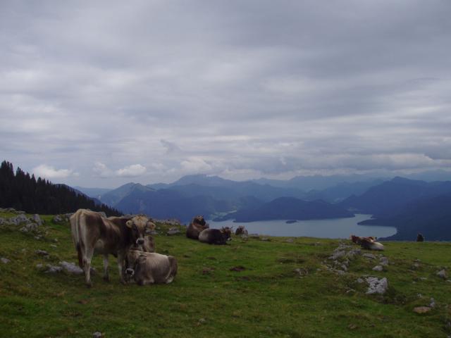 Beim Start war es ziemlich bewölkt, die Temperaturen waren aber angenehm. Die MTB-Auffahrt ist äußerst aussichtsreich (Walchensee, Soierngruppe, Wetterstein...) und wäre bei "normalen" Augusttemperaturen sicher eine Qual.