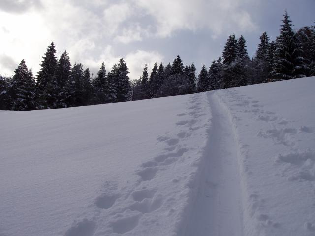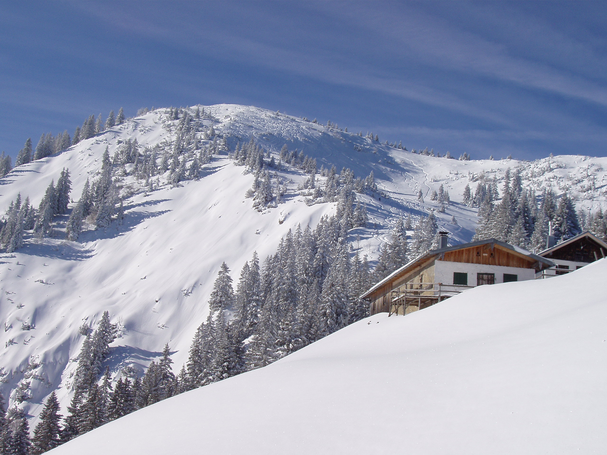 Gefahreneinschätzung: Nachdem heute Morgen LWS 3 (auch unterhalb 1500 m) angekündigt wurde, haben wir uns entschieden nach der Skipiste die Forststraße bis zu den Rauheck-Almen zu nehmen. Ganz lieben Dank an die Spurer.