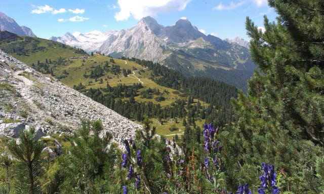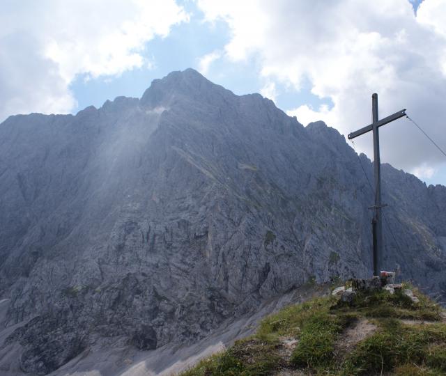 Von dort durch das Wörnerkar (Richtung Hochlandhütte) über einen einfachen schönen Wanderweg (am Schluss sehr mühsam im Schotter über den Wörnersattel) zum Wörnerkopf-Steinkarkopf.