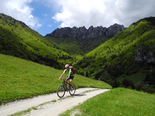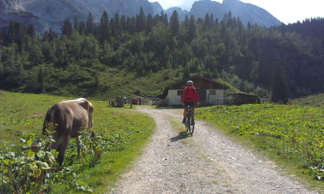 Auffahrt mit dem MTB durch das Bächental vorbei am Forsthaus Aquila. Dann links ab über Forststraße (kein Wegweiser gesehen) mit kurzem Gegenanstieg zur Zotenalm-Mitterleger (ca. 1300 m).MTB-Depot (Vorsicht sehr neugierige Kühe).