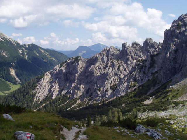 Zu Fuß über markierten Pfad (anfangs nur Fußspuren sichtbar), Almwiesen und lichten Wald zum Zotenalm-Hochleger (1614 m), aussichtsreich und einsam. Weiterweg über schmalen Südrücken zum Gipfel.