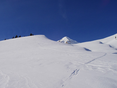Ab etwa Moosenalm bis zum Gipfel herrschten absolut traumhafte Pulverschneebedingungen (ca.30 cm)