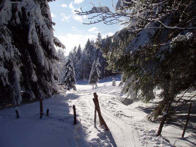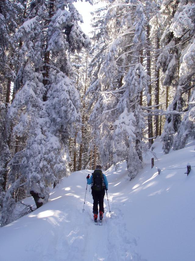Tourenverhältnisse: Die Forststraße war für den Aufstieg gut eingeschneit (ca. 10-15 cm). Bei der Abfahrt musste man ein paar Mal kurz abschnallen, die Sonnenwärme hatte ganze Arbeit geleistet.