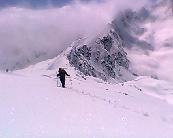 Am Start ca. 10 cm Neuschnee, grundlos, reichte aber für den Aufstieg.