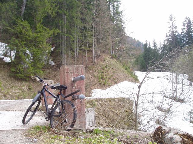 Ich habe das MTB an der Brücke (ca. 1200 m) gelassen und bin zu Fuß über den Wanderweg (fast schneefrei) zu den