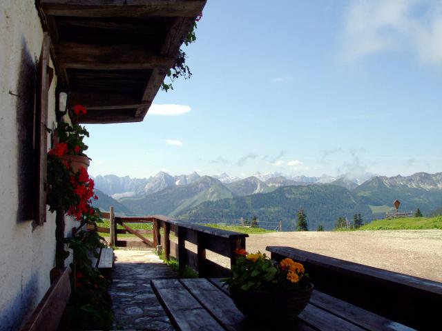 Mit dem MTB vom Parkplatz bei der Kapelle über gute Forststraße (meist mäßig steil, teilweise schattig, viele schöne Ausblicke) bis zur Rotwandlhütte (1528 m)