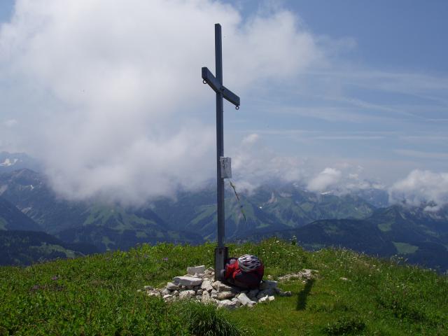 Dann zu Fuß auf den Gipfel, der Gipfelweg war ebenso schneefrei und kaum feucht (es herrschte Hochbetrieb auf dem Gipfel). Wetter sonnig, einzelne kurze Bewölkungen, angenehm warm.